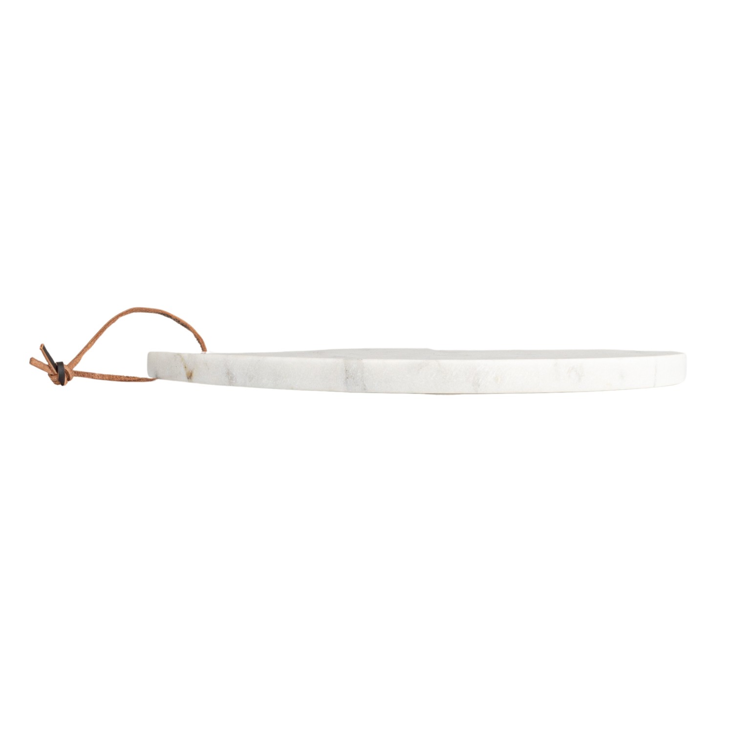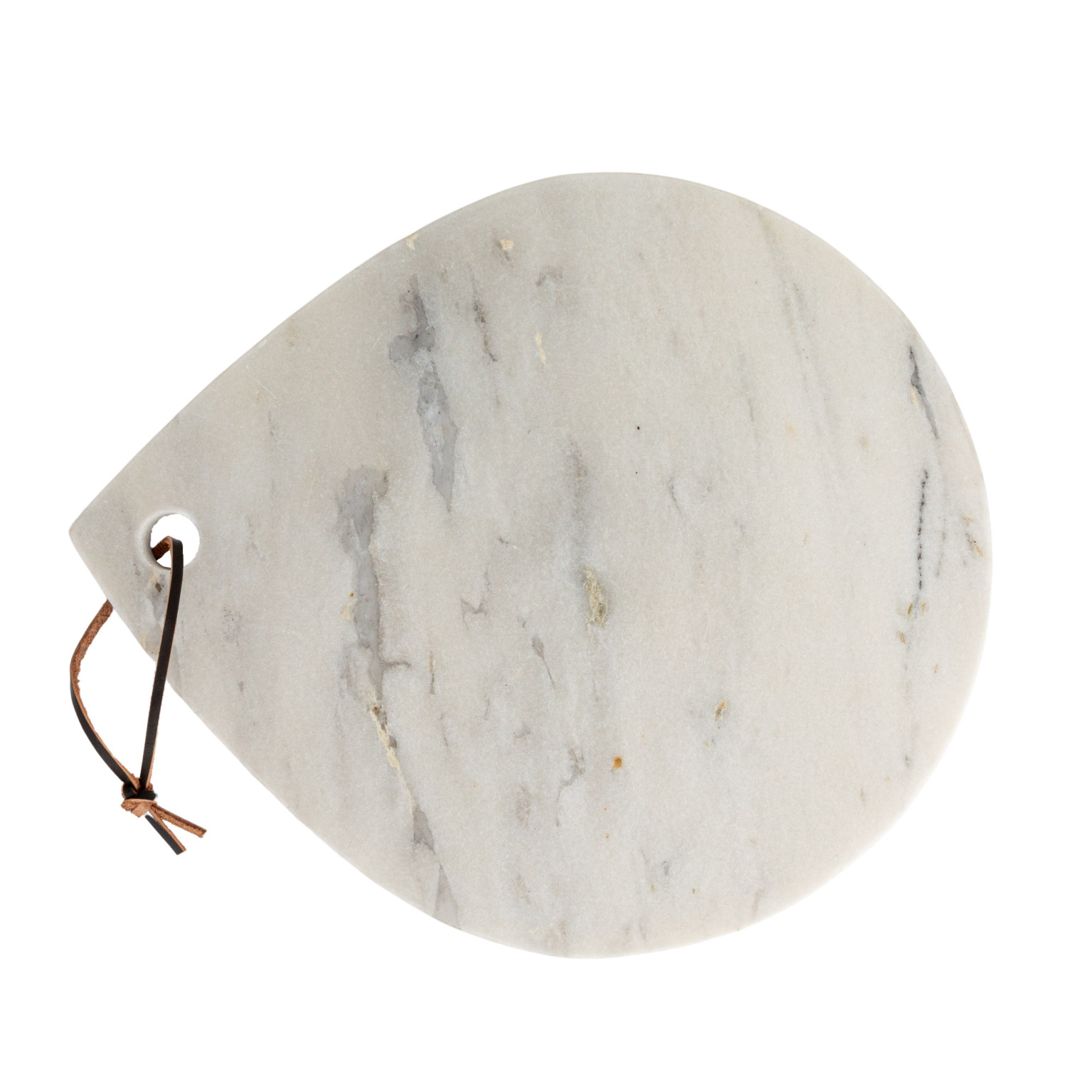 Catalog Name: 14"L x 12"W Marble Cheese/Serving Board w/ Handle & Leather Tie, White Melange (Each One Will Vary)
