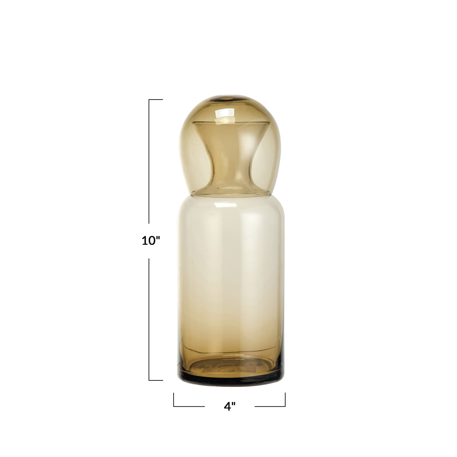 Catalog Name: 4" Round x 10"H 16 oz. Glass Carafe w/ 12 oz. Drinking Glass, Amber Color, Set of 2