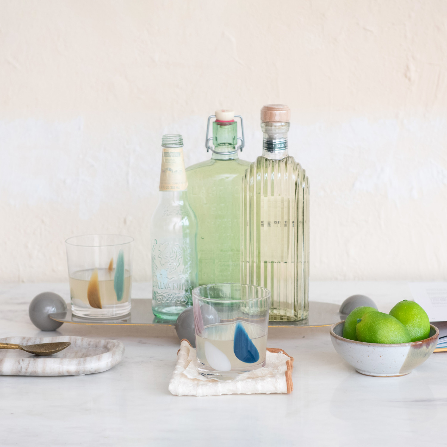 Catalog Name: 3-1/2" Round x 4"H 12 oz. Handmade Art Glass Drinking Glass, Multi Color Blue
