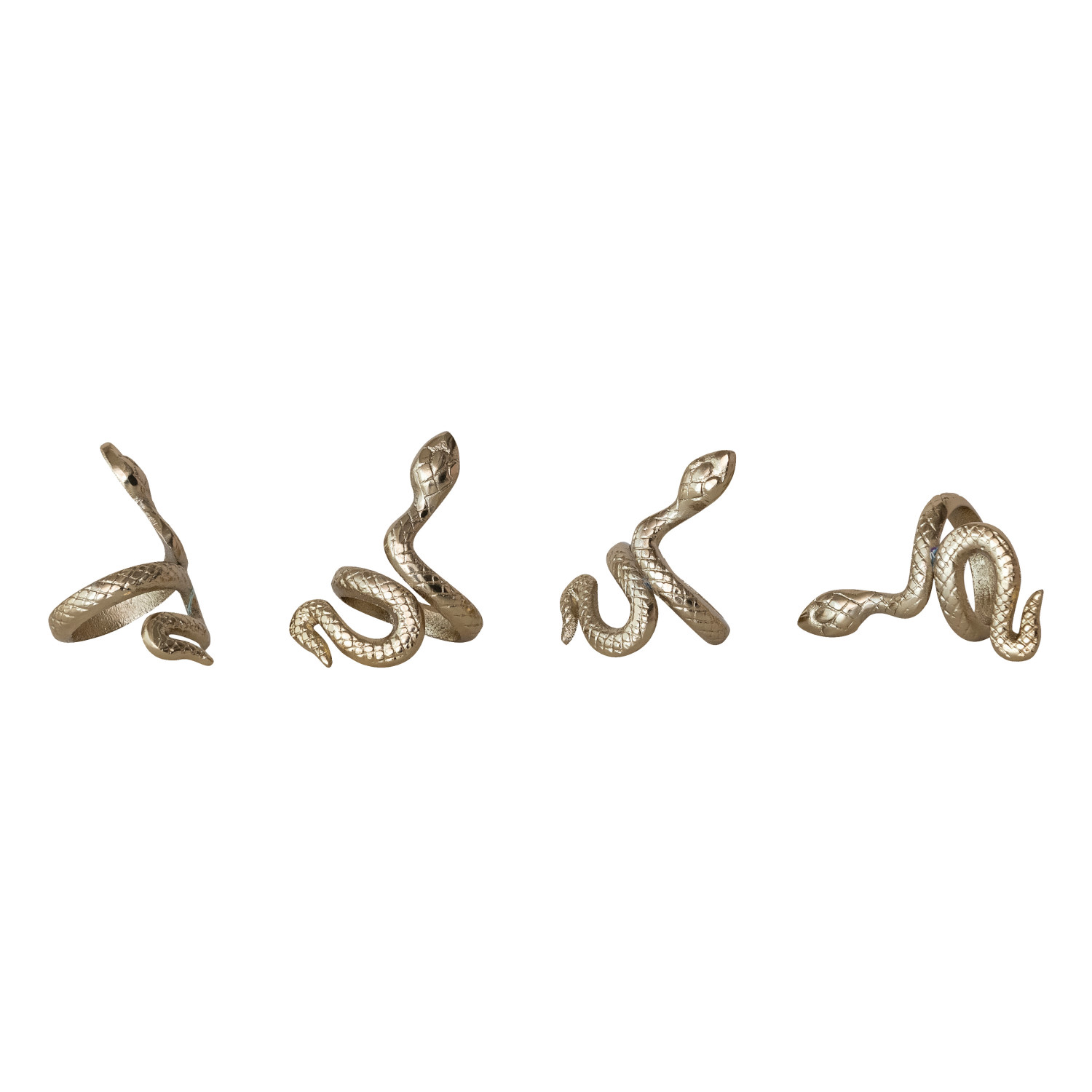 Cast Aluminum Snake Shaped Napkin Rings, Gold Finish, Set of 4 Tied with Jute