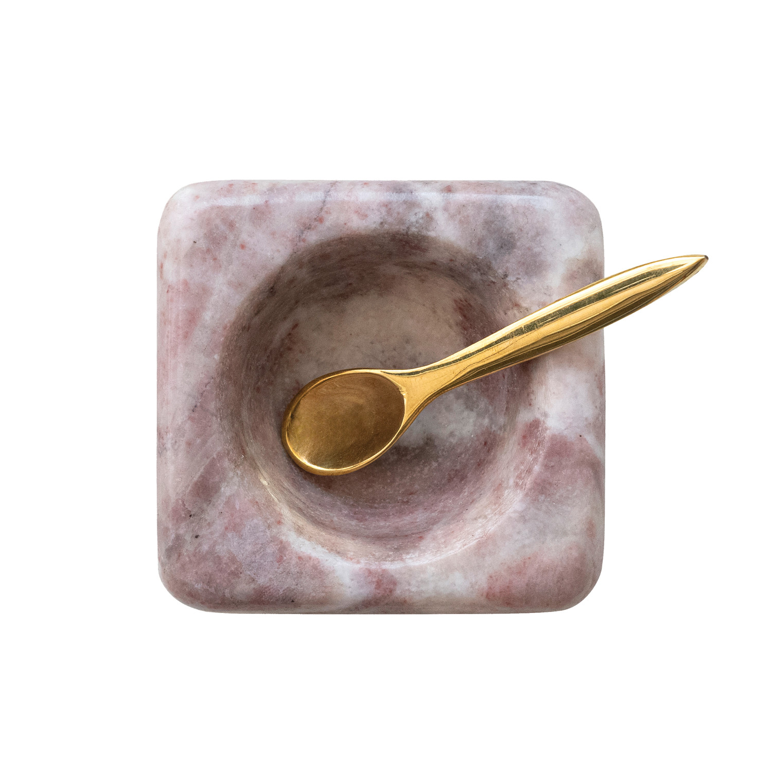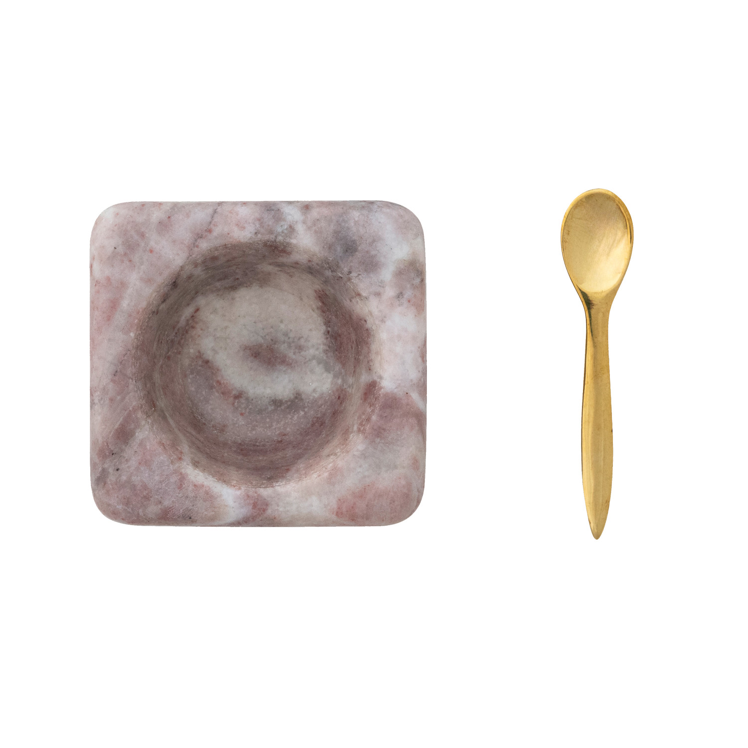 Catalog Name: 3-1/4" Square x 1-3/4"H Marble Bowl w/ Brass Spoon, Pink, Set of 2 (Each One Will Vary)