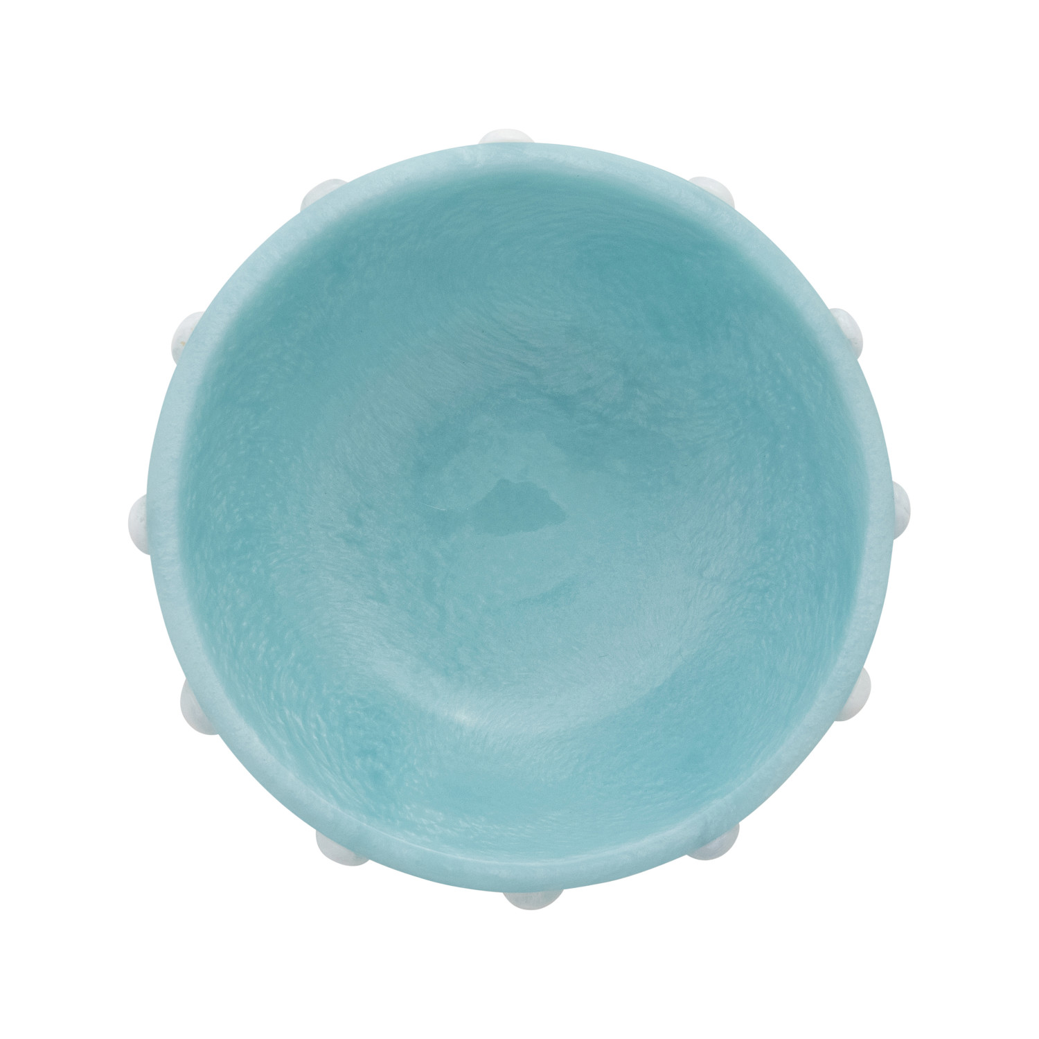 Catalog Name: 9-1/2" Round x 3-1/2"H Marbled Resin Hobnail Bowl, Blue & White