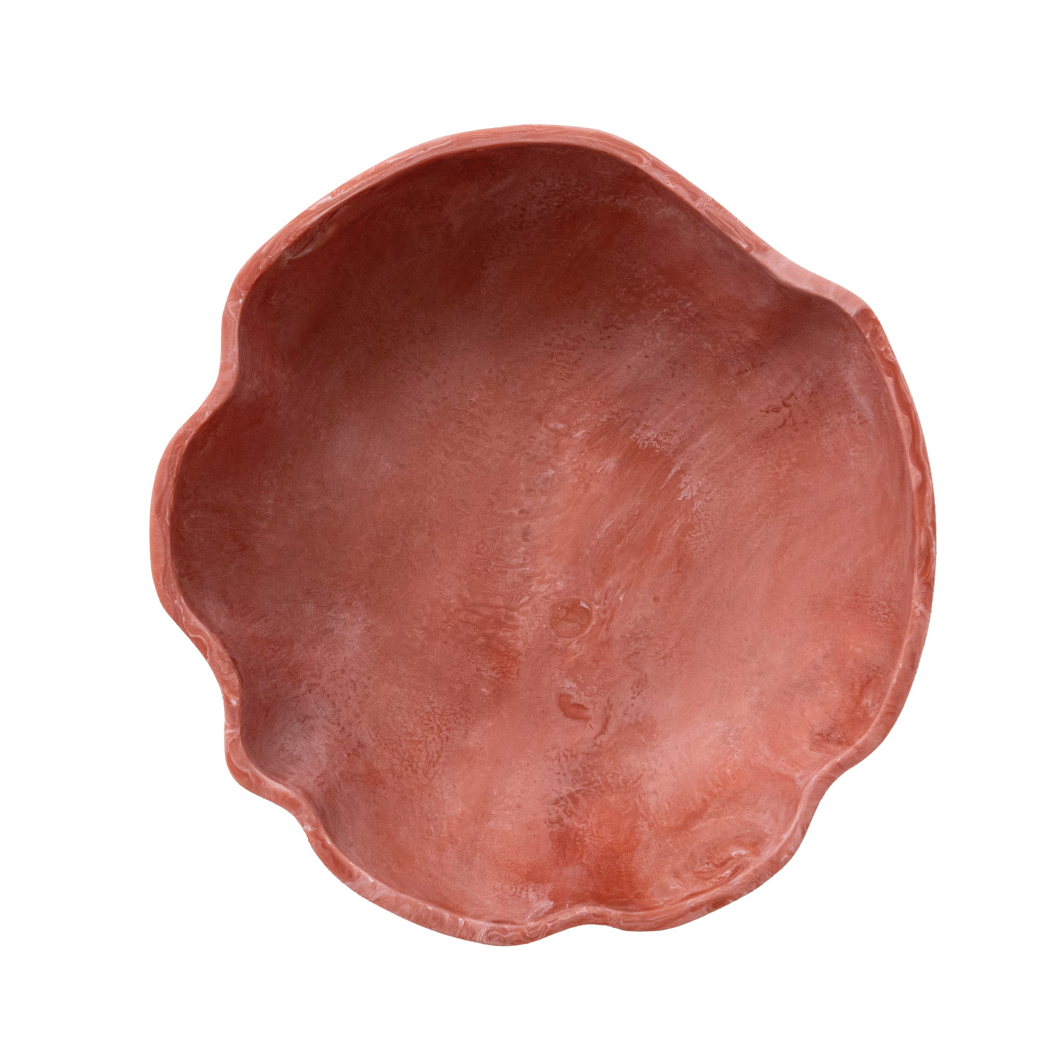 Catalog Name: 14" Round Marbled Resin Organic Shaped Bowl, Coral Color (Each One Will Vary)