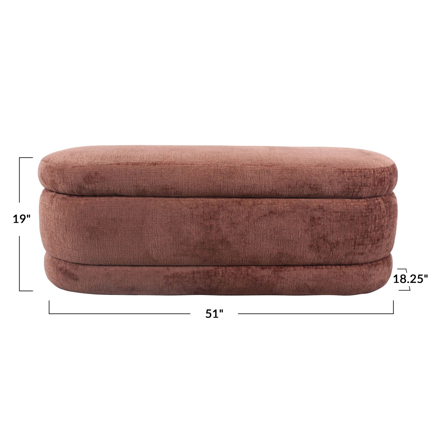Catalog Name: 51"W x 18-1/4"D x 19"H Chenille Fabric Upholstered Bench w/ Storage, Caramel Color, Truck Ship