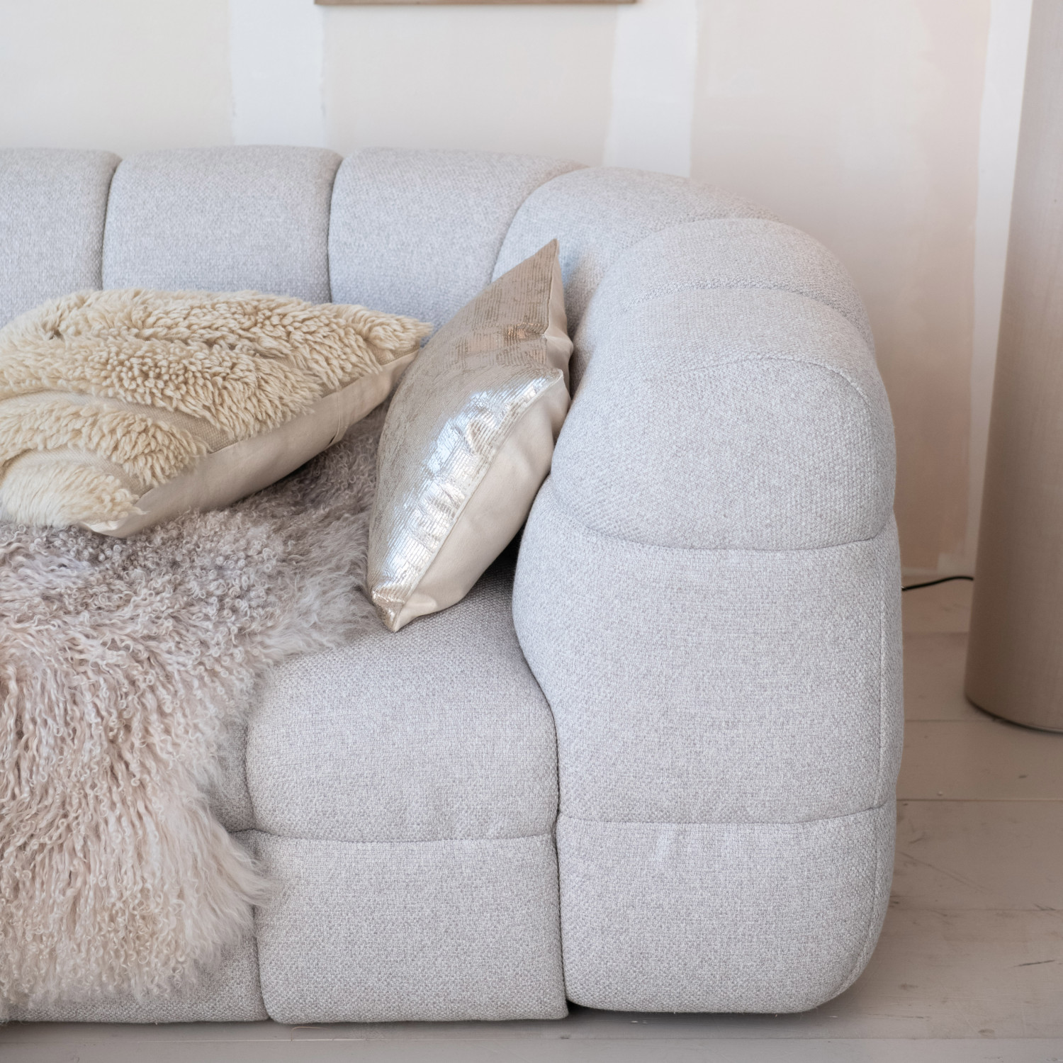 This Grey Mélange Tufted Curved Sofa is the epitome of comfort and style. The sofa's graceful curves are highlighted by the intricate tufting on its back and seating area, inviting anyone to indulge in its plush embrace. The high-density foam cushions rest upon a solid pine wood frame, ensuring both durability and a soft, supportive sit. Its substantial size, measuring over 81 inches in length, provides ample space for relaxation and socializing. Measures 81 inches in length, 43.25 inches in width, and 28.25 inches in height, offering spacious seating. With its chic grey mélange upholstery and classic wood legs, this sofa is a versatile piece that will elevate the aesthetic of any room it graces.
