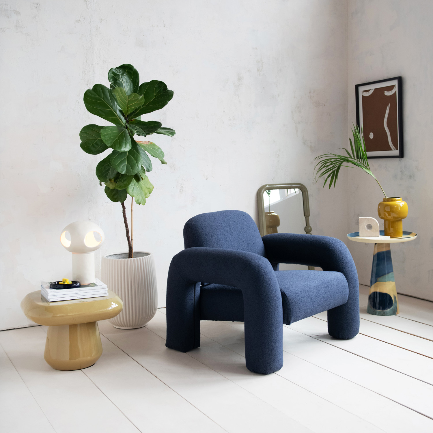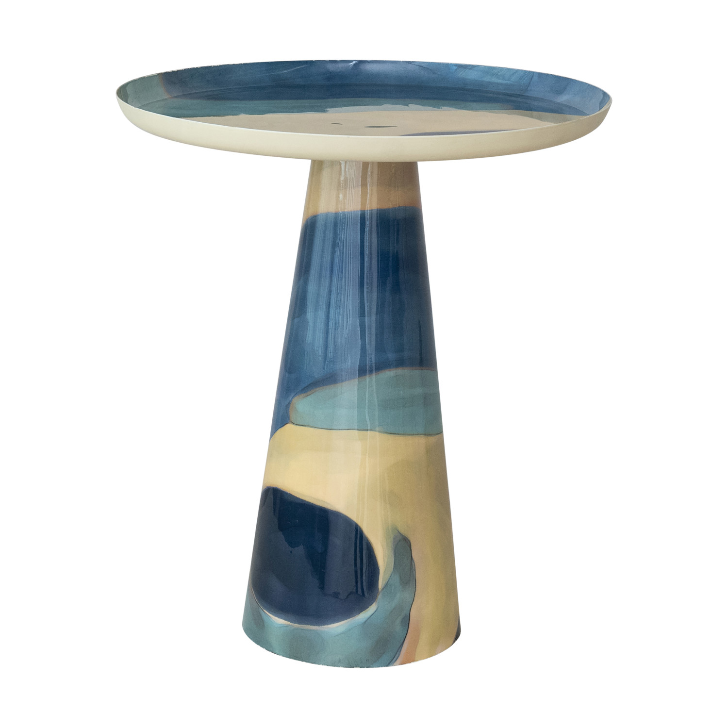 Catalog Name: 18" Round x 20-1/2"H Enameled Metal Table w/ Abstract Design, Blue & Cream Color, KD (Each One Will Vary)