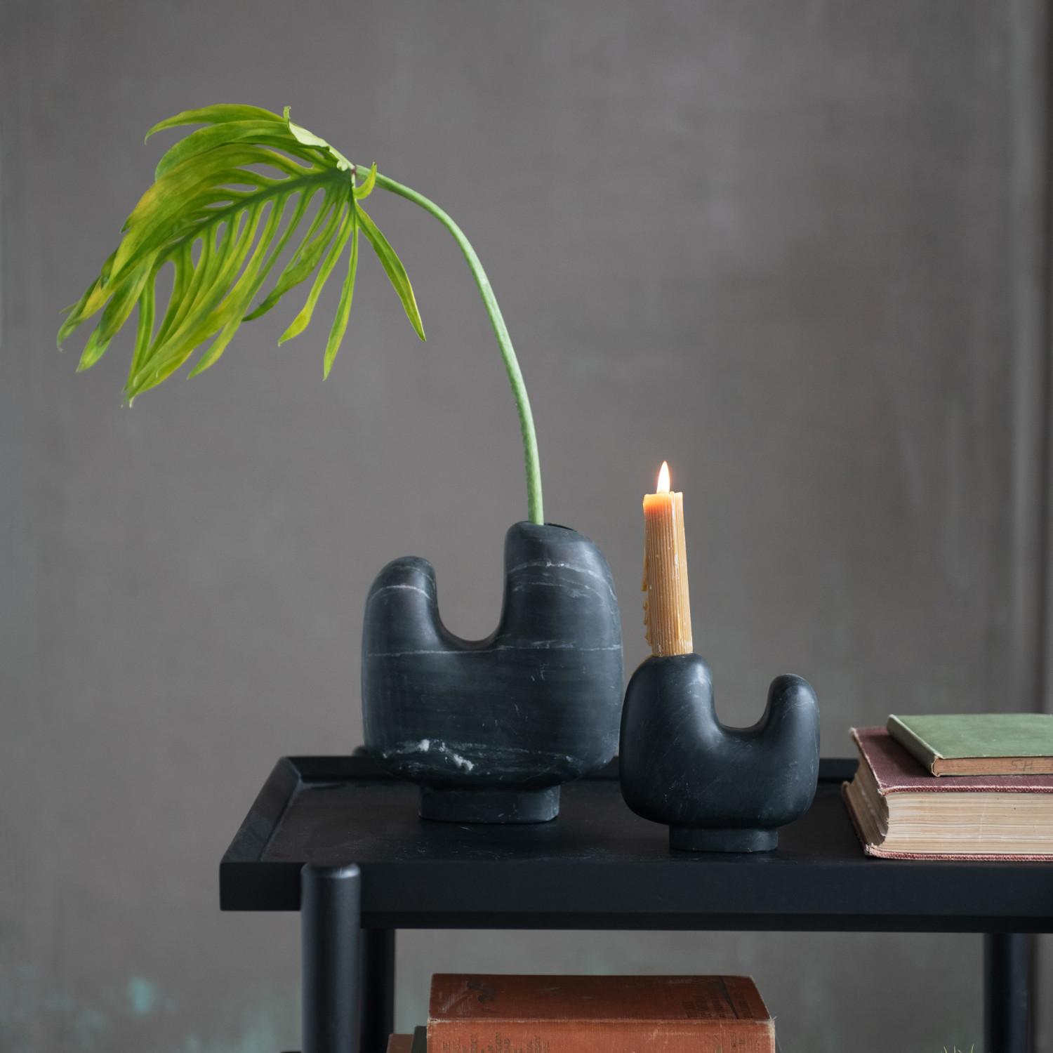 Marble Footed Taper Holder, Black (Each One Will Vary)