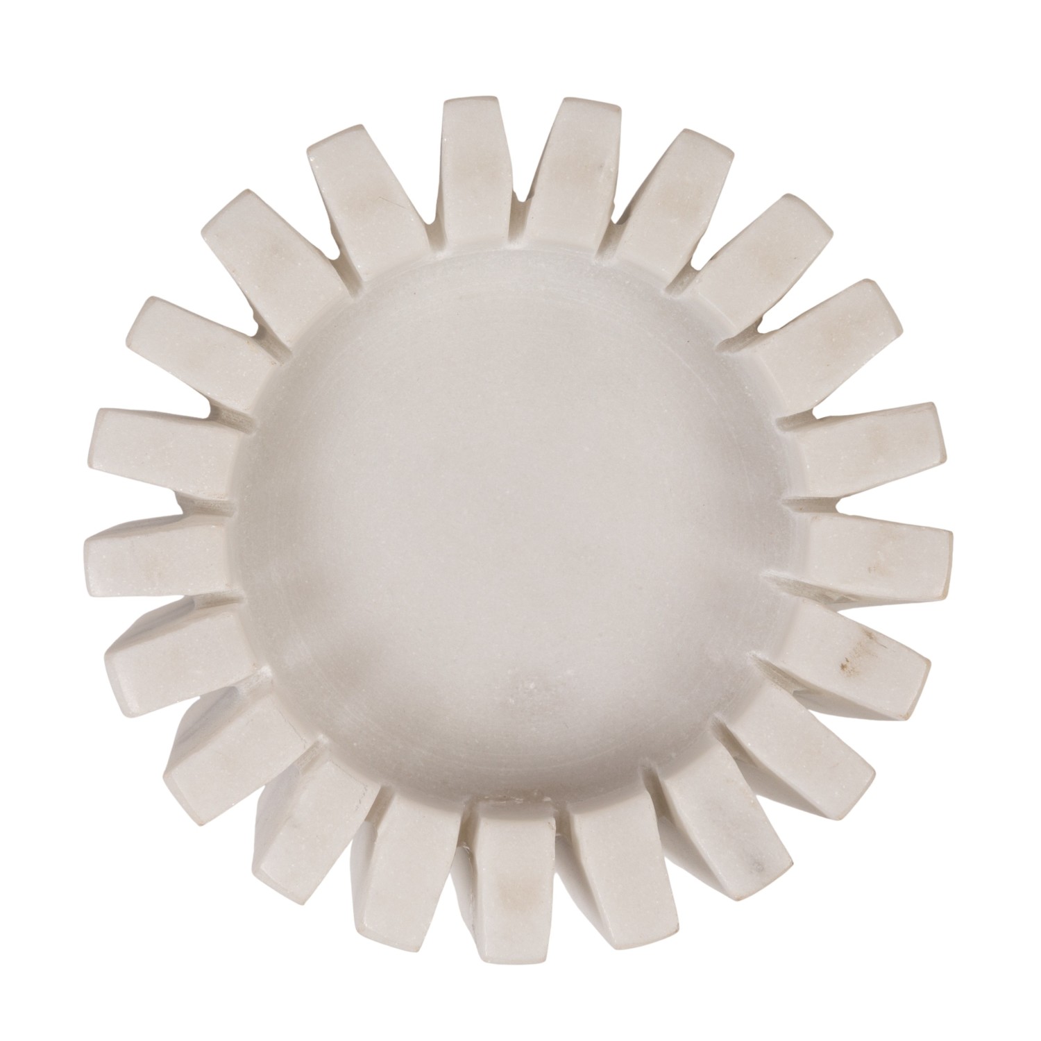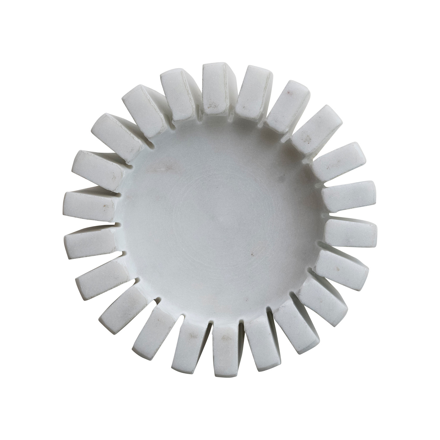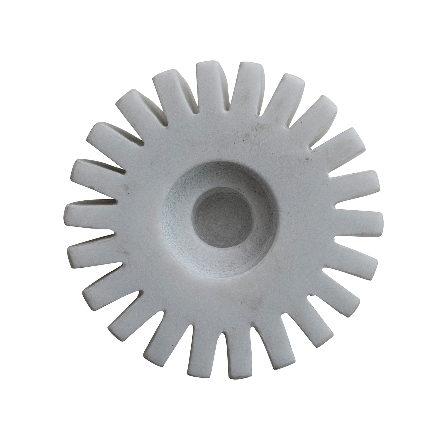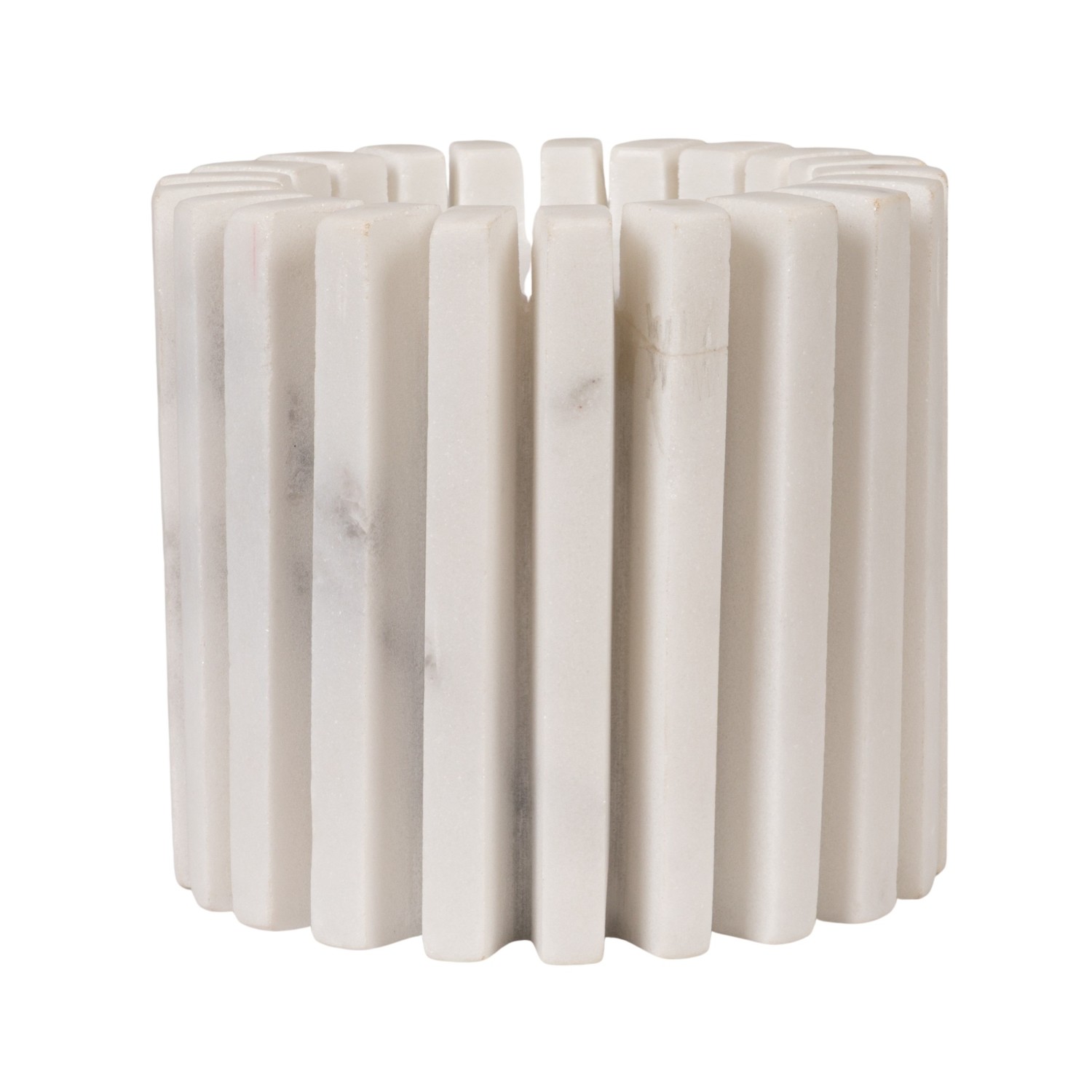 Catalog Name: 4-1/2" Round x 4"H Marble Cogged 2-Sided Pillar/Taper/Tealight Holder, White