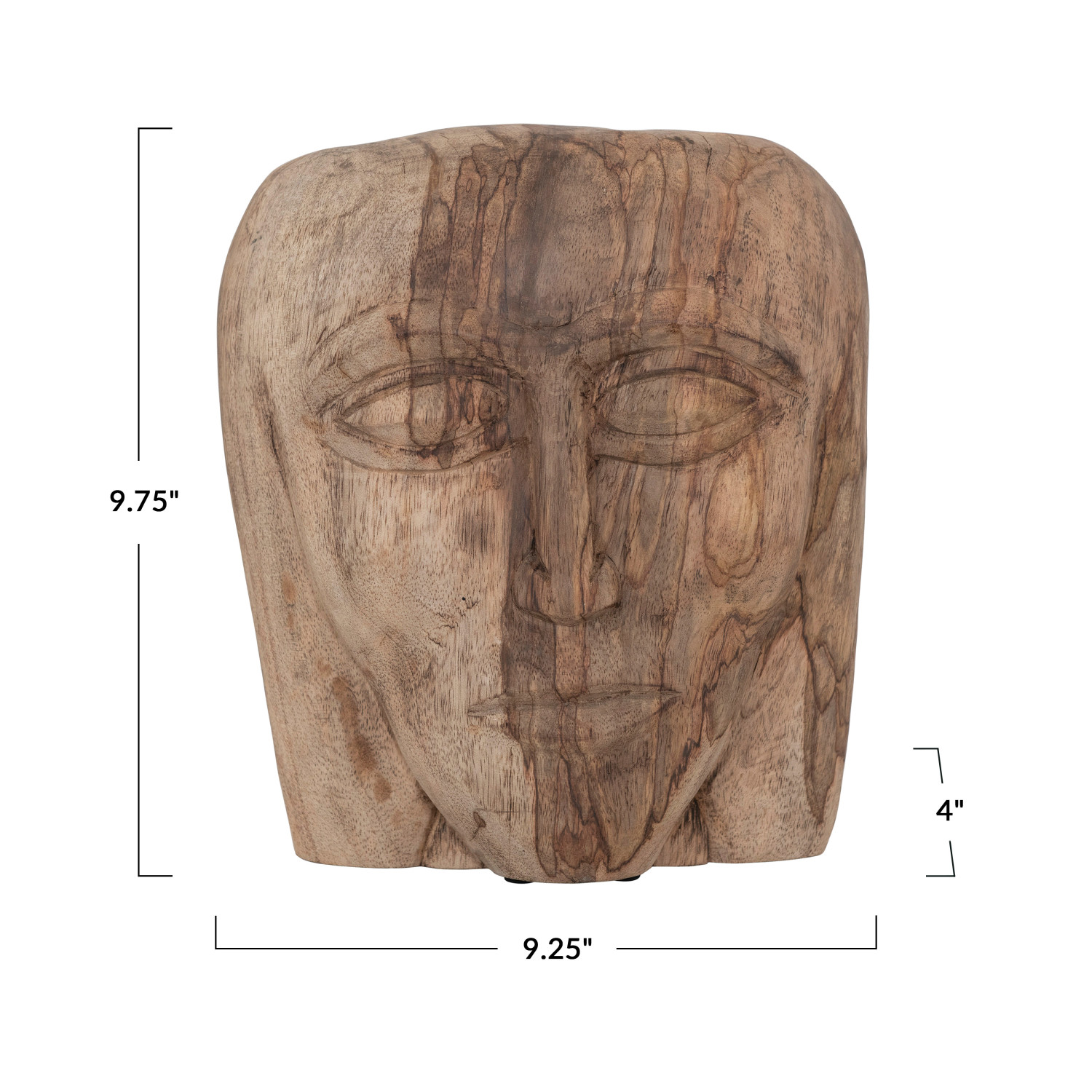 Catalog Name: 9-1/4"L x 4"W x 9-3/4"H Hand-Carved Mango Wood Face, Natural (Hangs or Sits) (Each One Will Vary)