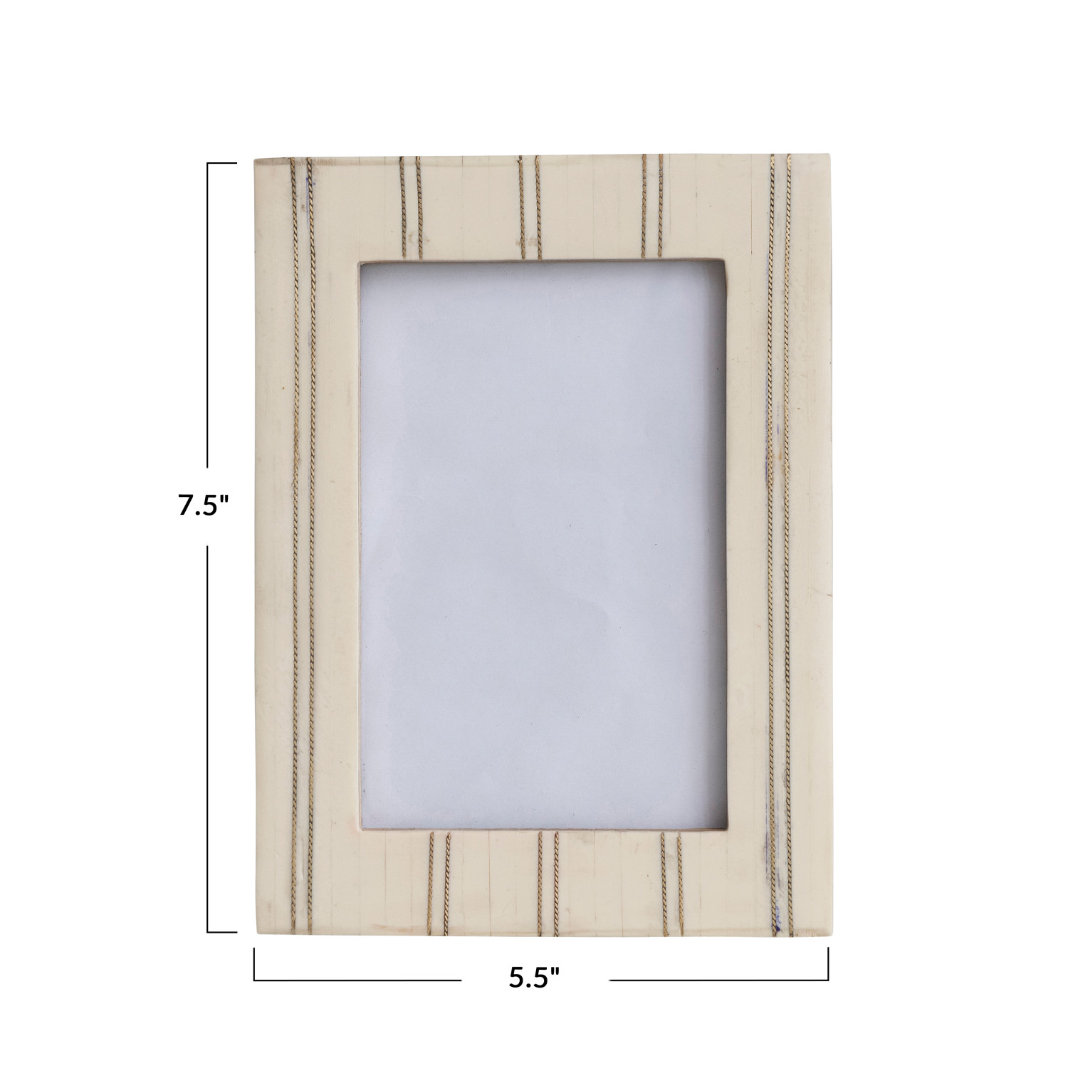 Resin Photo Frame w/ Metal Inlay, Cream Color (Holds 4" x 6" Photo)