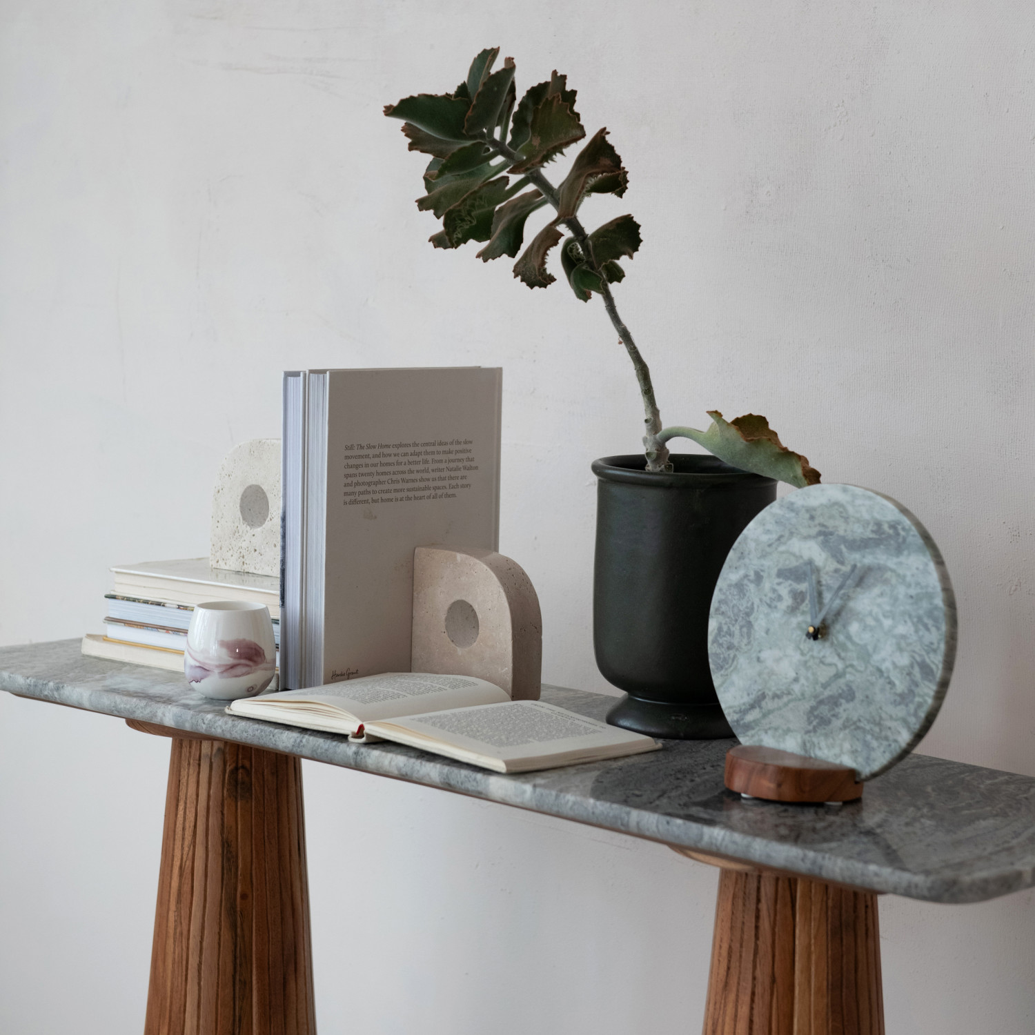 Travertine Bookends w/ Circle Cut-Outs, Beige, Set of 2 (Each One Will Vary)