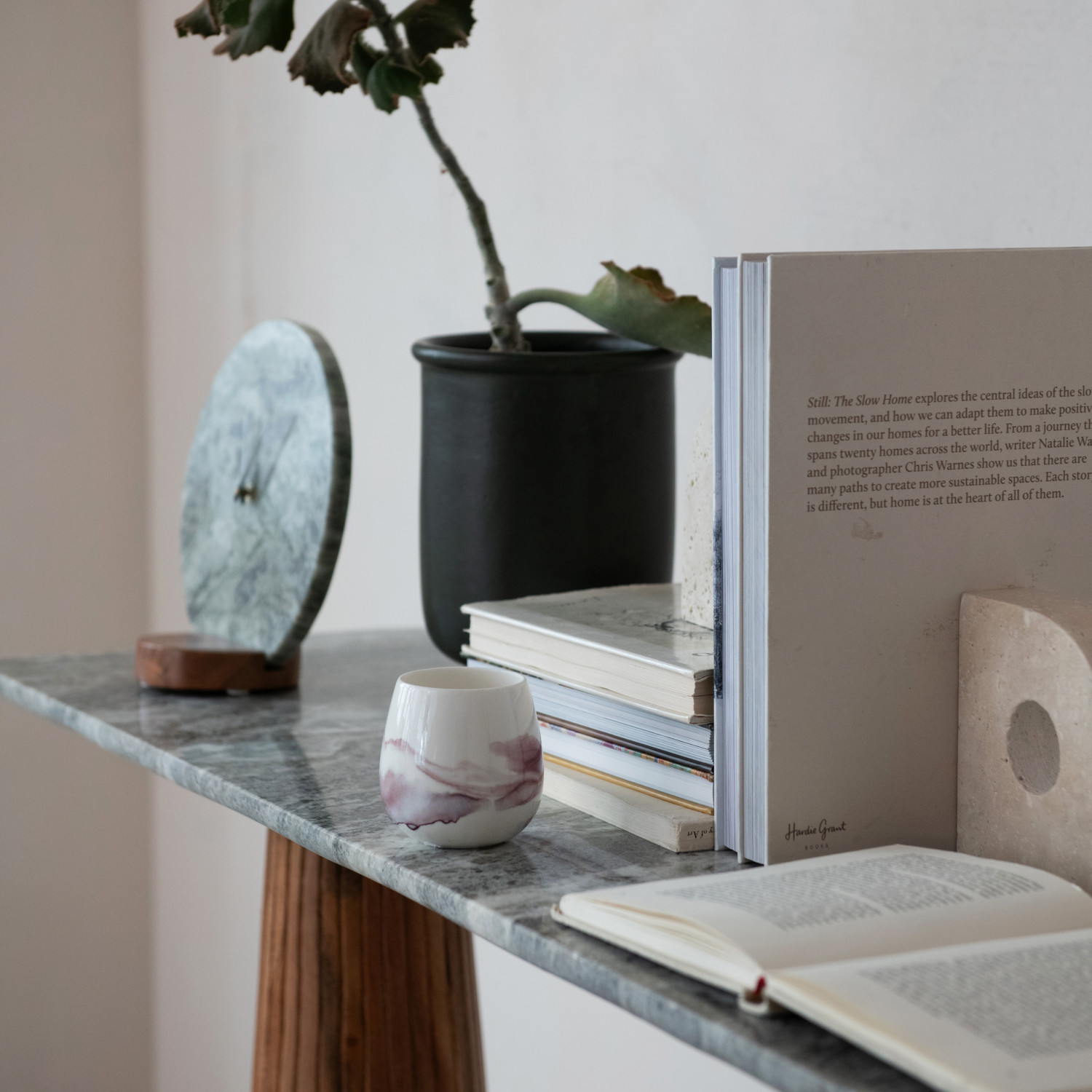 Marble Clock w/ Acacia Wood Base, Set of 2 (Requires 1-AA Battery) (Each One Will Vary)