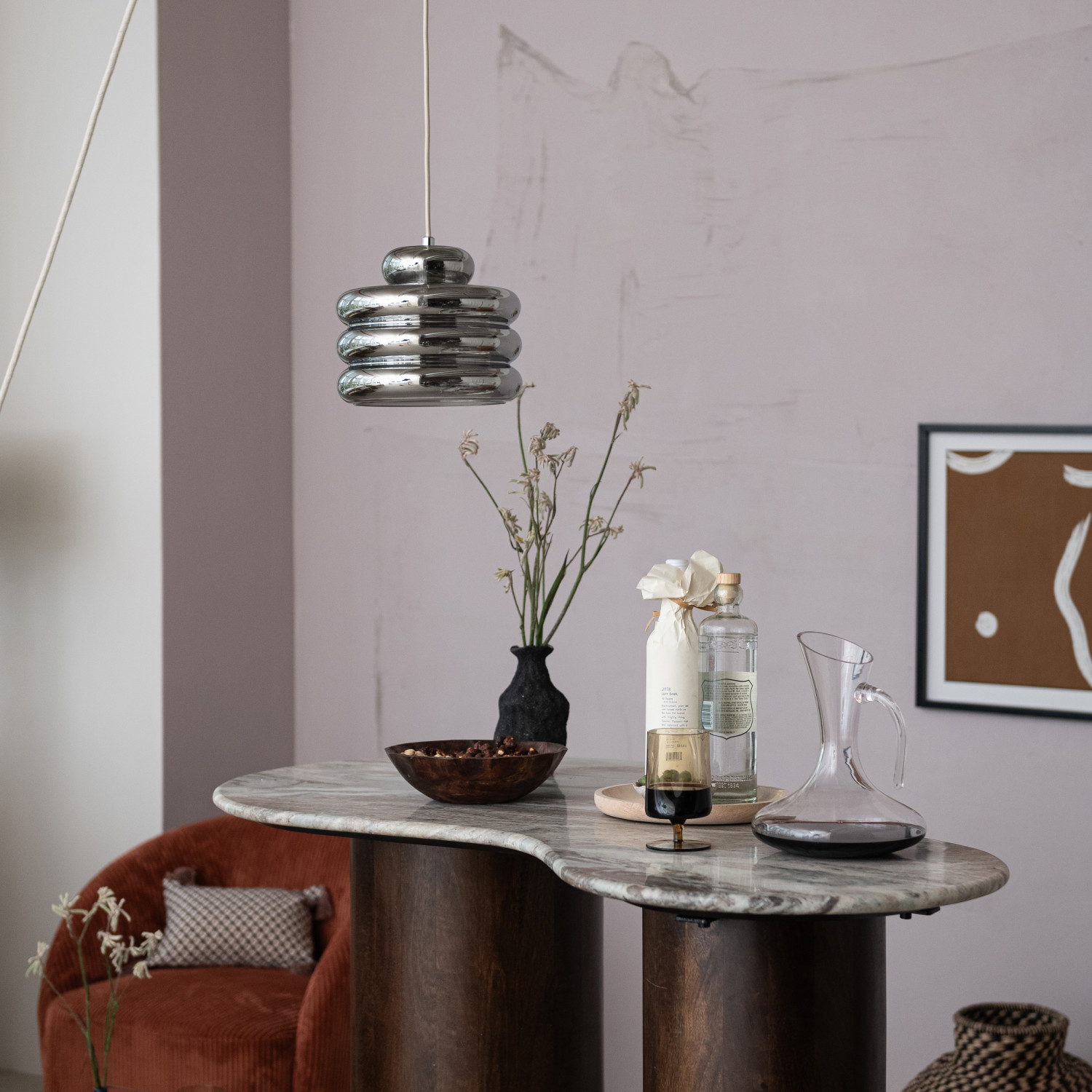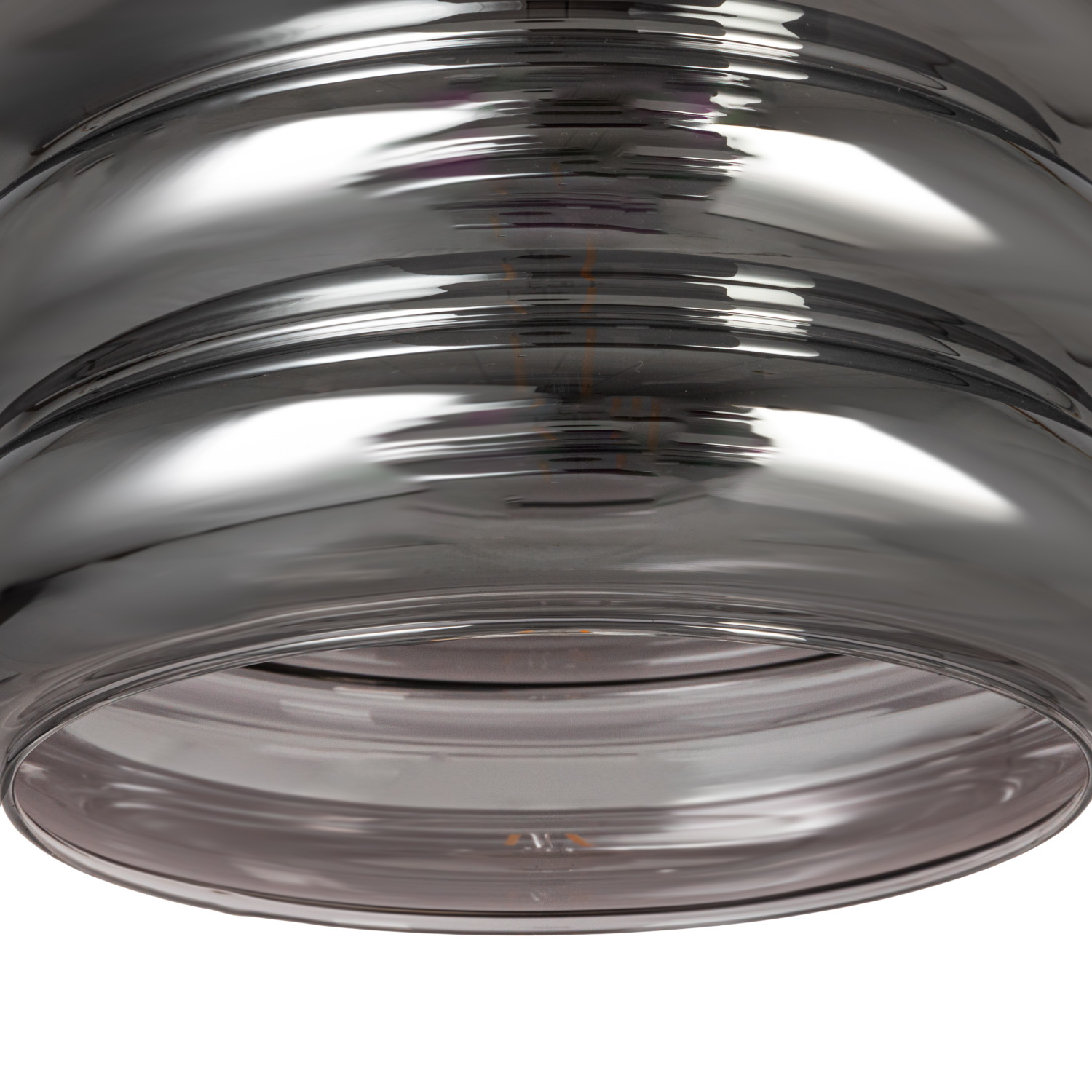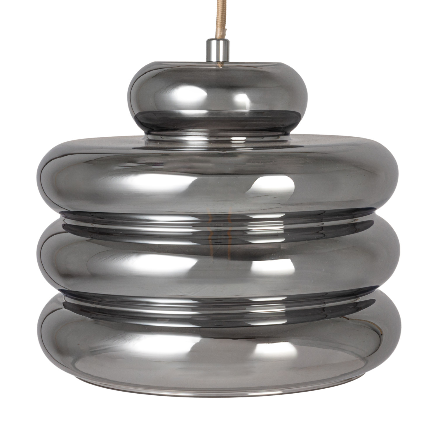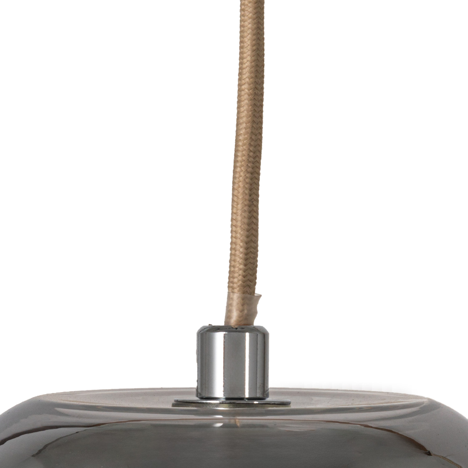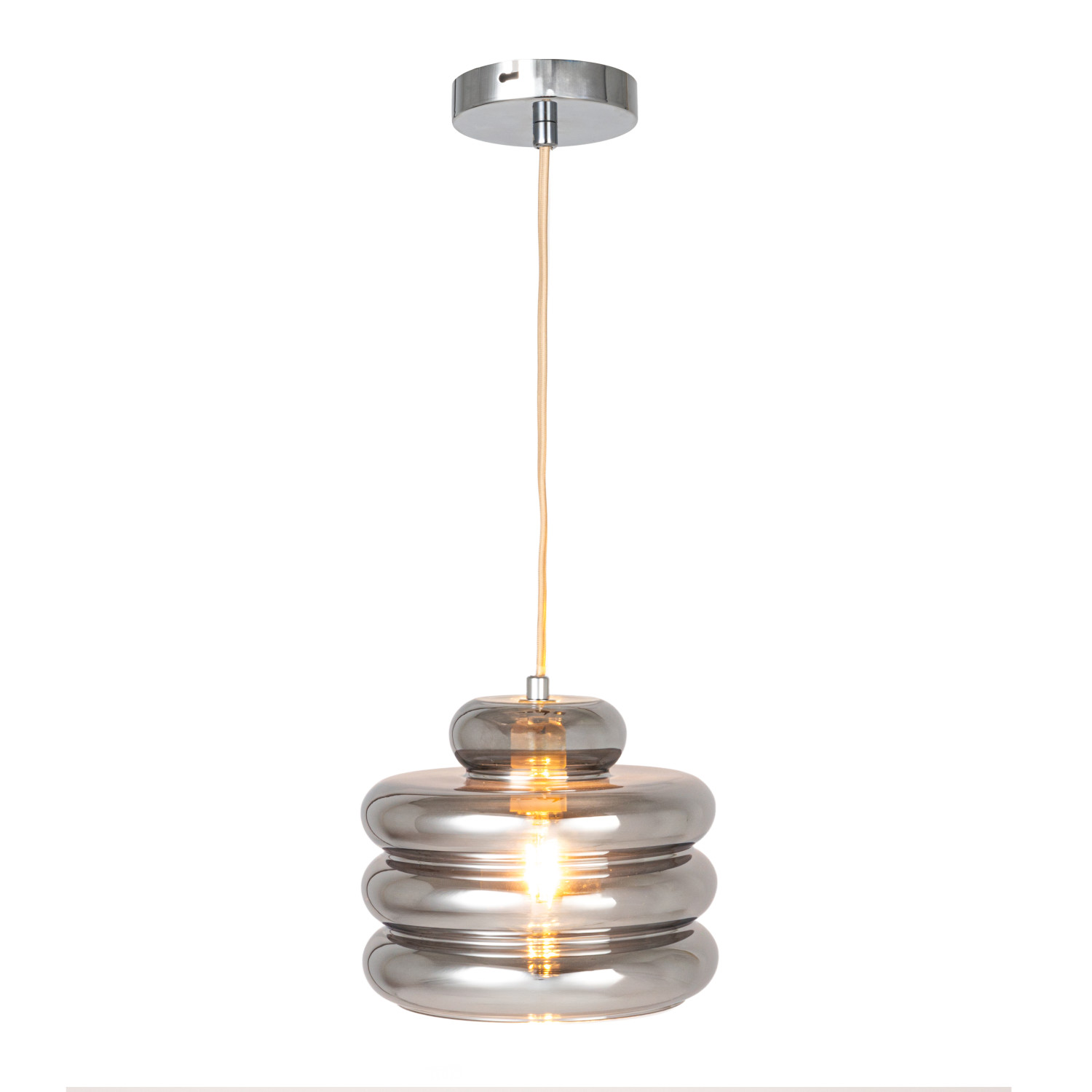 Catalog Name: 9-1/2" Round x 7-3/4"H Glass & Metal Ribbed Pendant Lamp, 6' Fabric Cord, Chrome Finish (Hardwire Only)