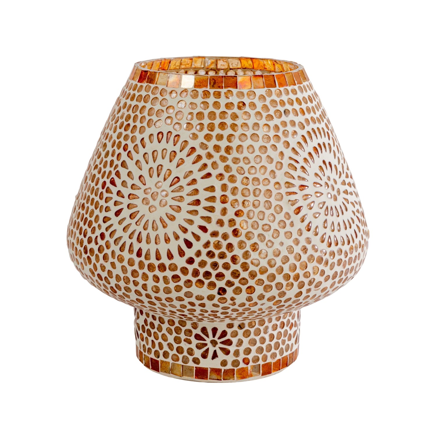 Catalog Name: 9" Round x 9"H Glass Mosaic Table Lamp w/ Inline Switch, Amber Color & White