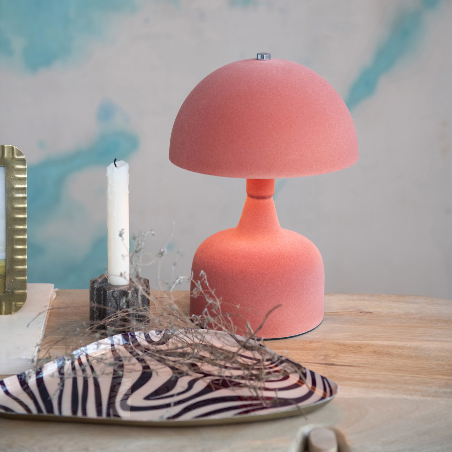 Flocked Metal Table Lamp w/ Inline Switch, Terra-cotta Color