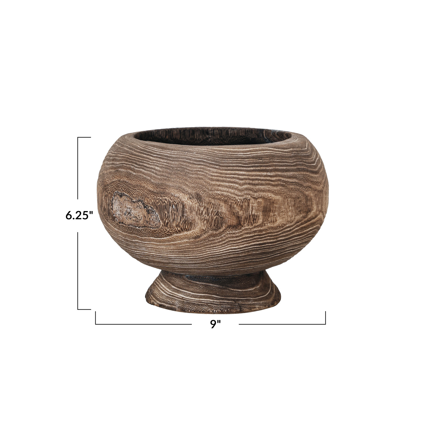 Catalog Name: 9" Round x 6-1/4"H Paulownia Wood Footed Planter, Stained Finish (Holds 8" Pot)