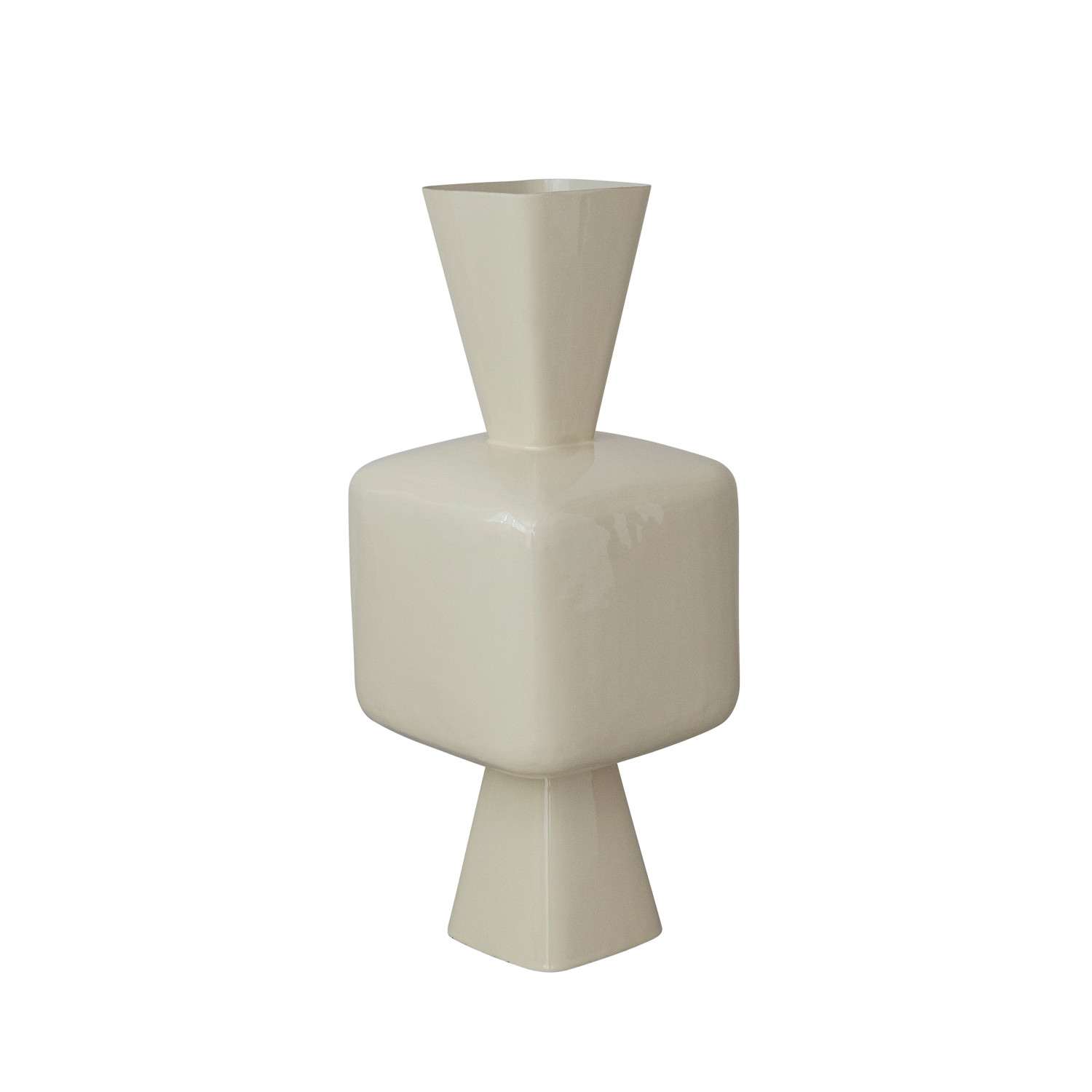 Catalog Name: 12" Square x 30"H Enameled Metal Vase, Cream Color, Truck Ship