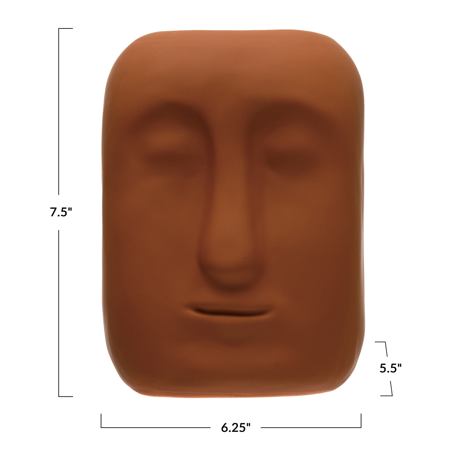 This strikingly modern planter features a serene visage carved into stoneware with a rich, matte latex glaze. Stoneware planter with carved face in matte sienna latex glaze. Add a hint of modern art to any living space with this contemporary planter. Made from 100% stoneware.