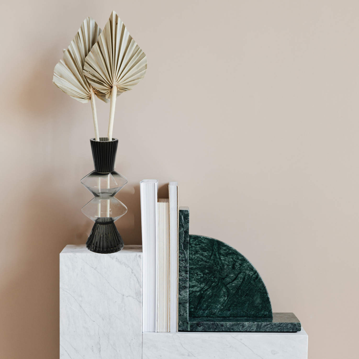 A beautiful smoke colored glass vase with fluted detailing and triangular curved designs. This vase is perfect for adding a touch of elegance and sophistication to any modern, minimalist, or industrial style home décor. This vase can hold fresh or artificial flowers, branches, or other decorative items to create a beautiful centerpiece or accent piece for any room. Made of glass.