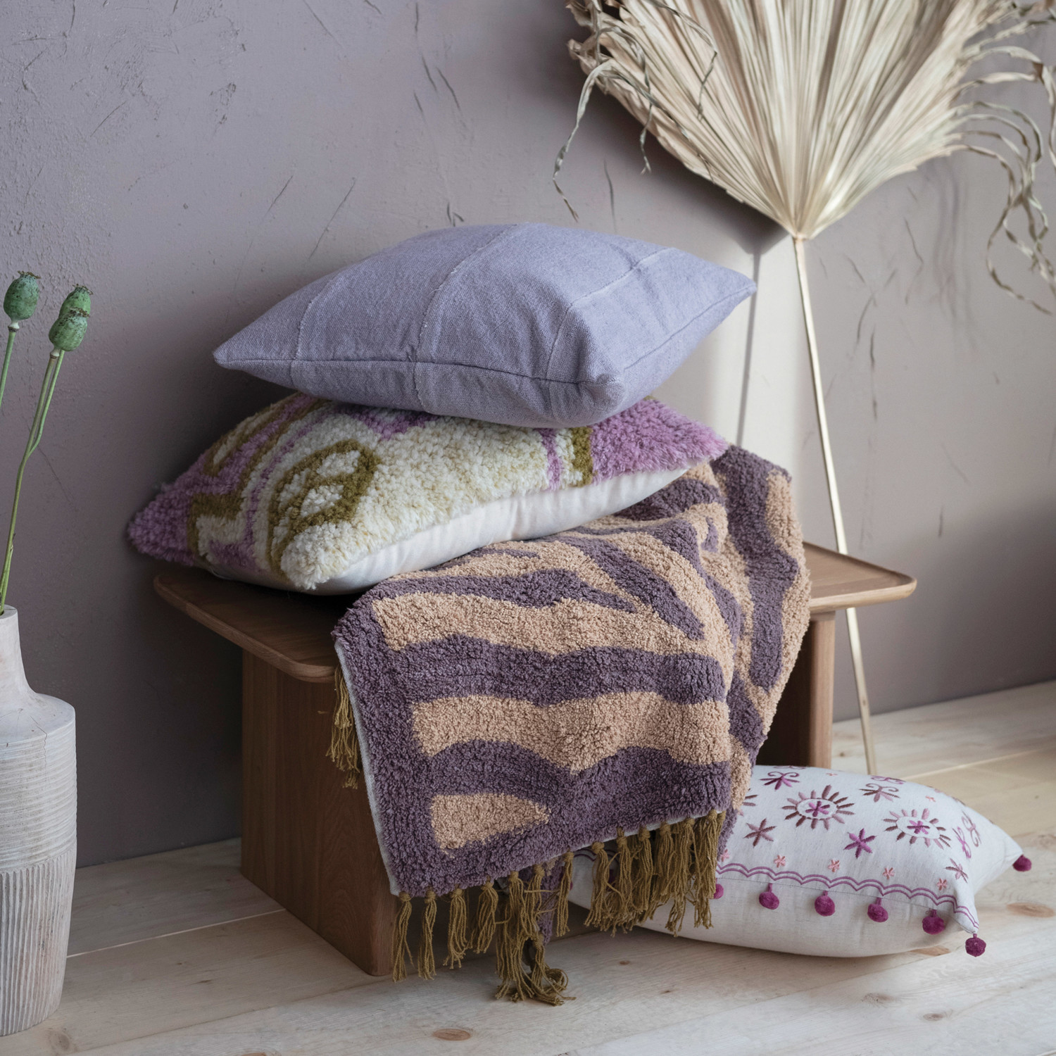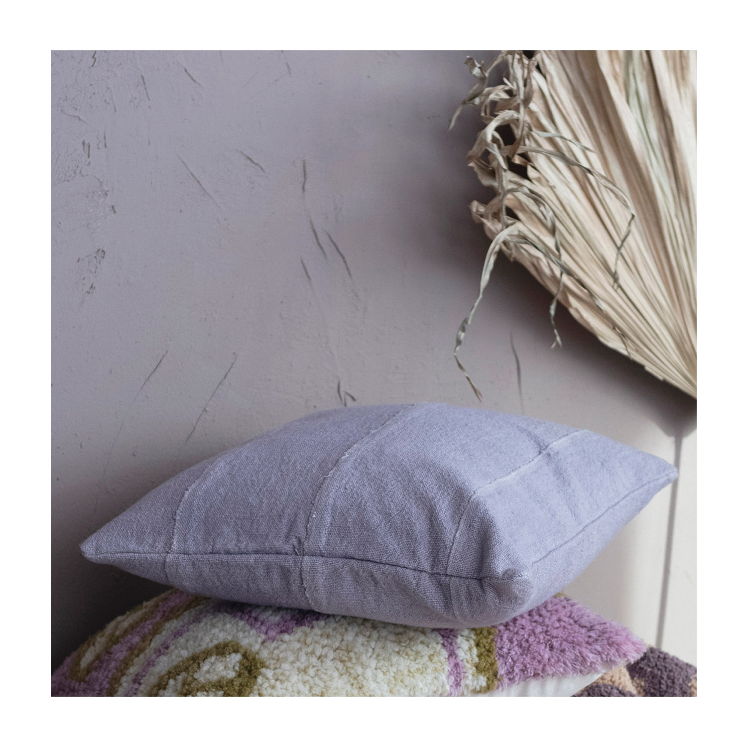 This luxuriously rustic throw pillow cover features intricately pieced mudcloth with a visible stitch. Square cotton pieced mudcloth throw pillow in lavender. Express your constantly evolving style with the simple addition of this eye-catching pillow. Removable cotton pillow cover with polyester insert; Machine wash cold, gentle cycle; Do not bleach, warm iron if needed.
