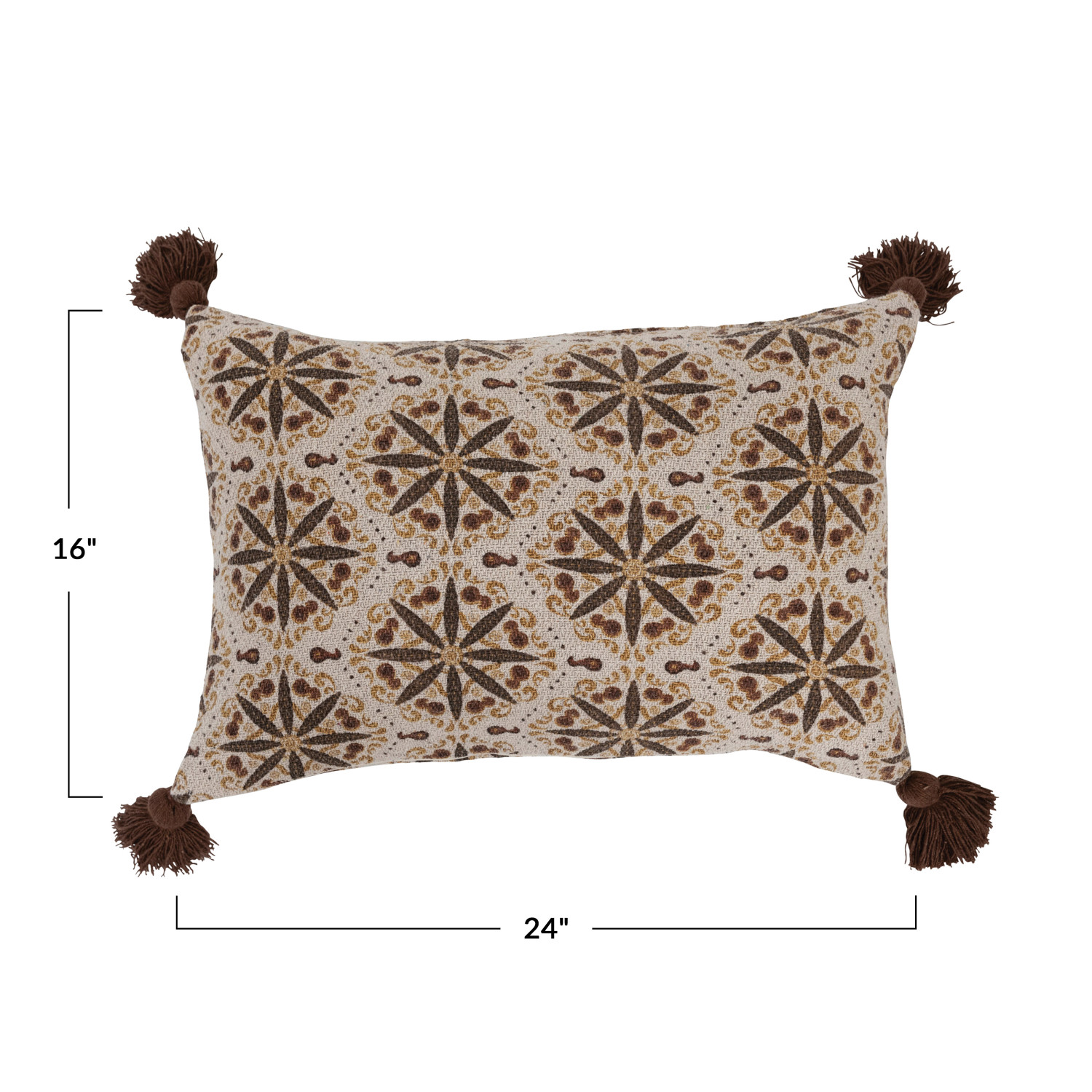Catalog Name: 24"L x 16"H Recycled Cotton Blend Lumbar Pillow w/ Floral Medallion Print & Tassels, Multi Color