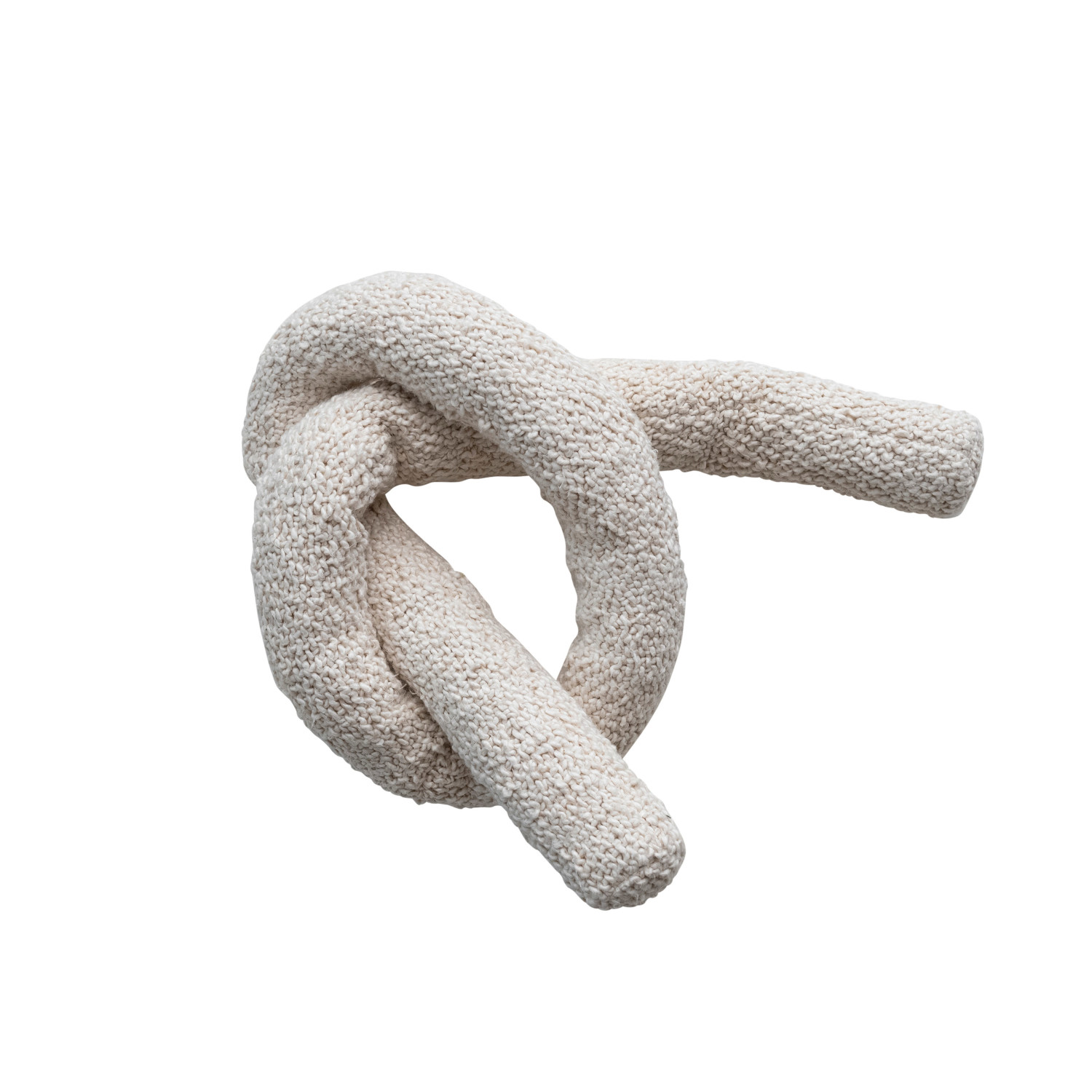 Catalog Name: 22"L x 9"W x 7"H Woven Cotton Bouclé Knot Pillow, Cream Color
