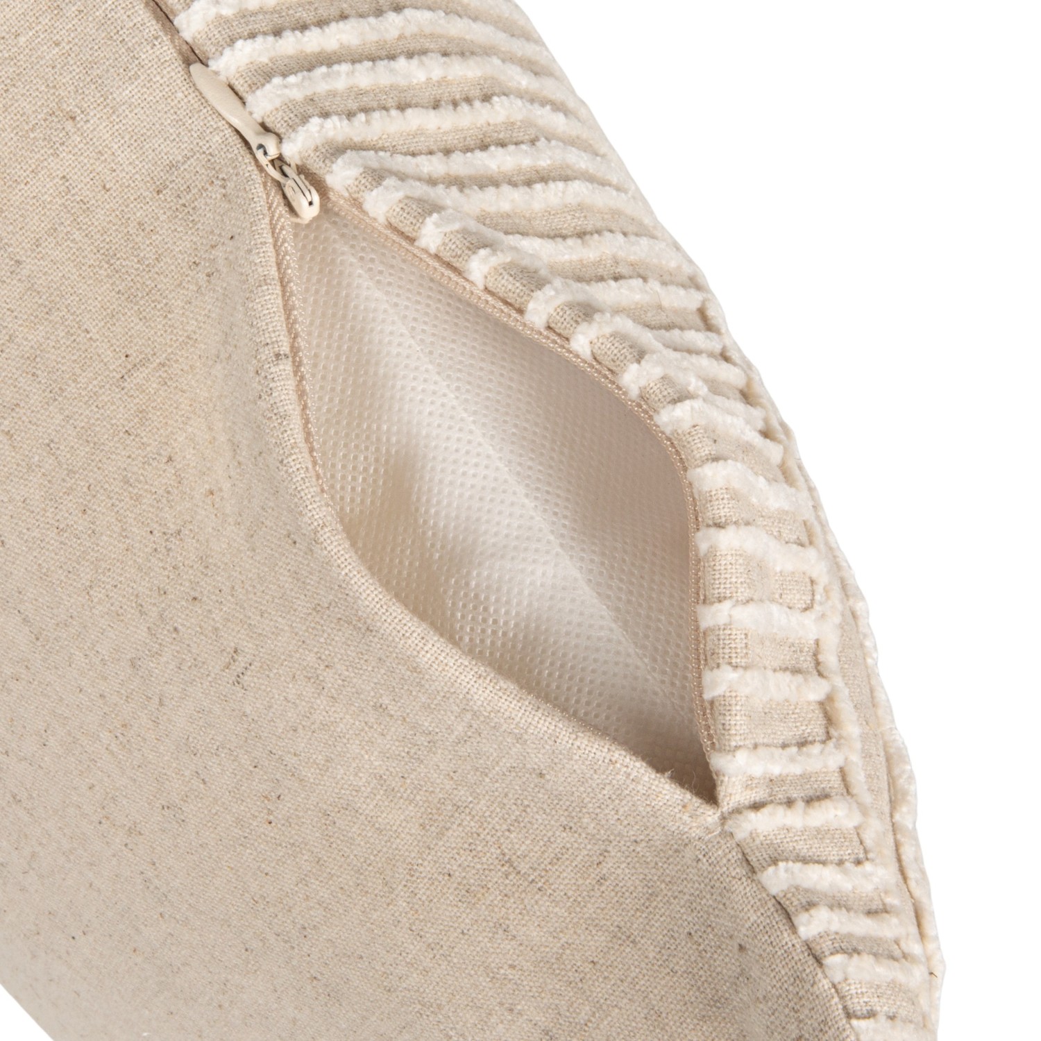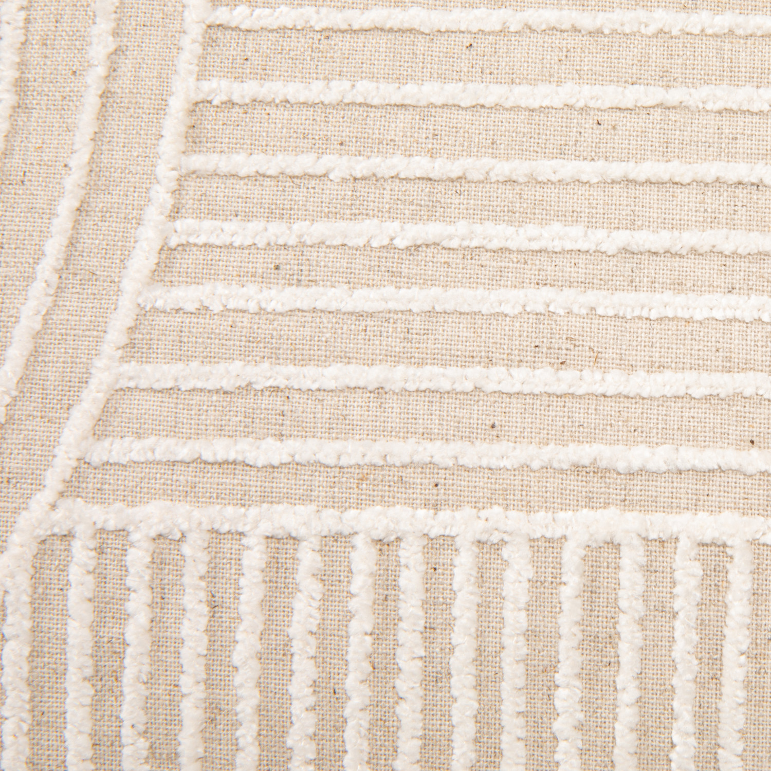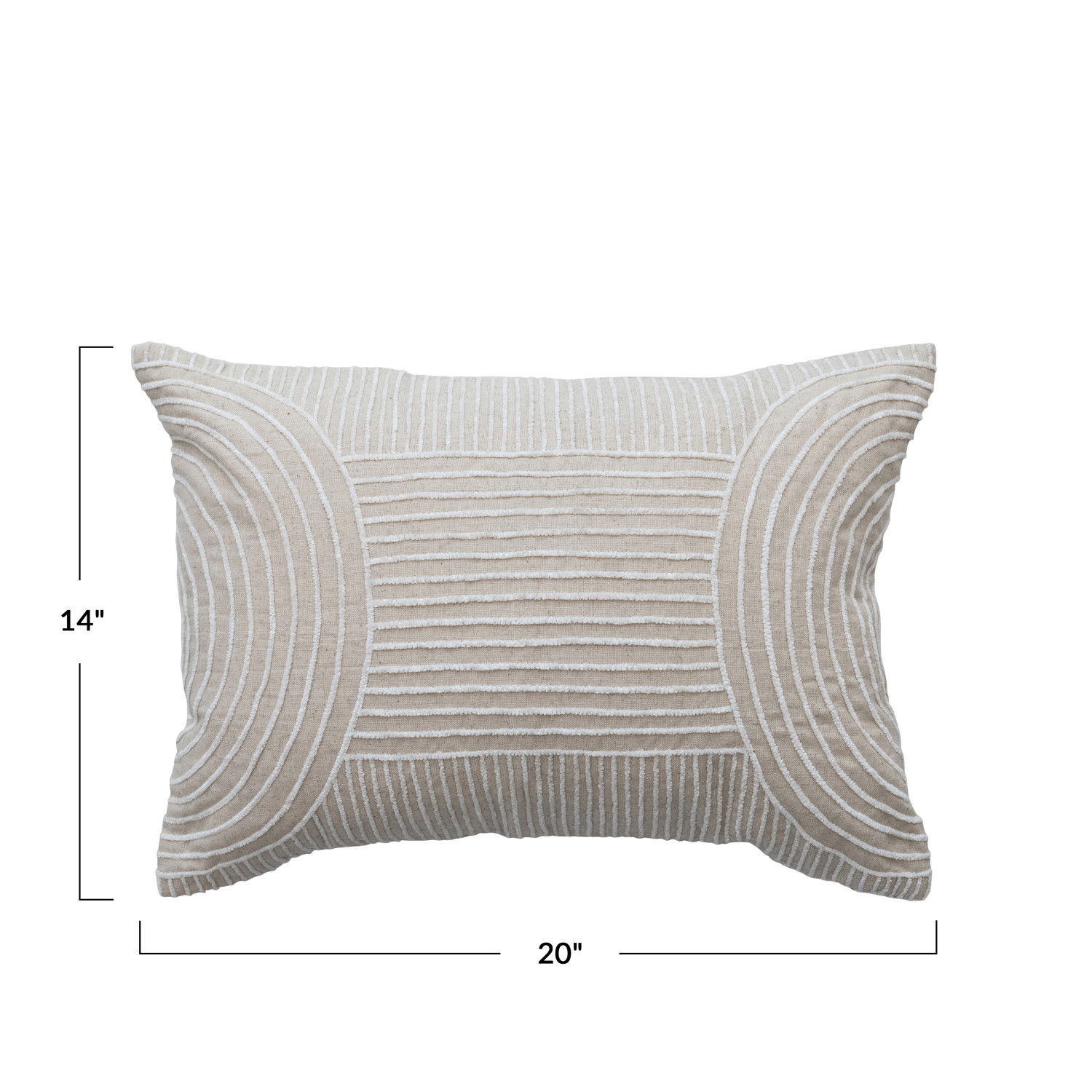 Catalog Name: 20"L x 14"H Cotton Blend Embroidered Lumbar Pillow w/ Geometric Stripes, White & Natural