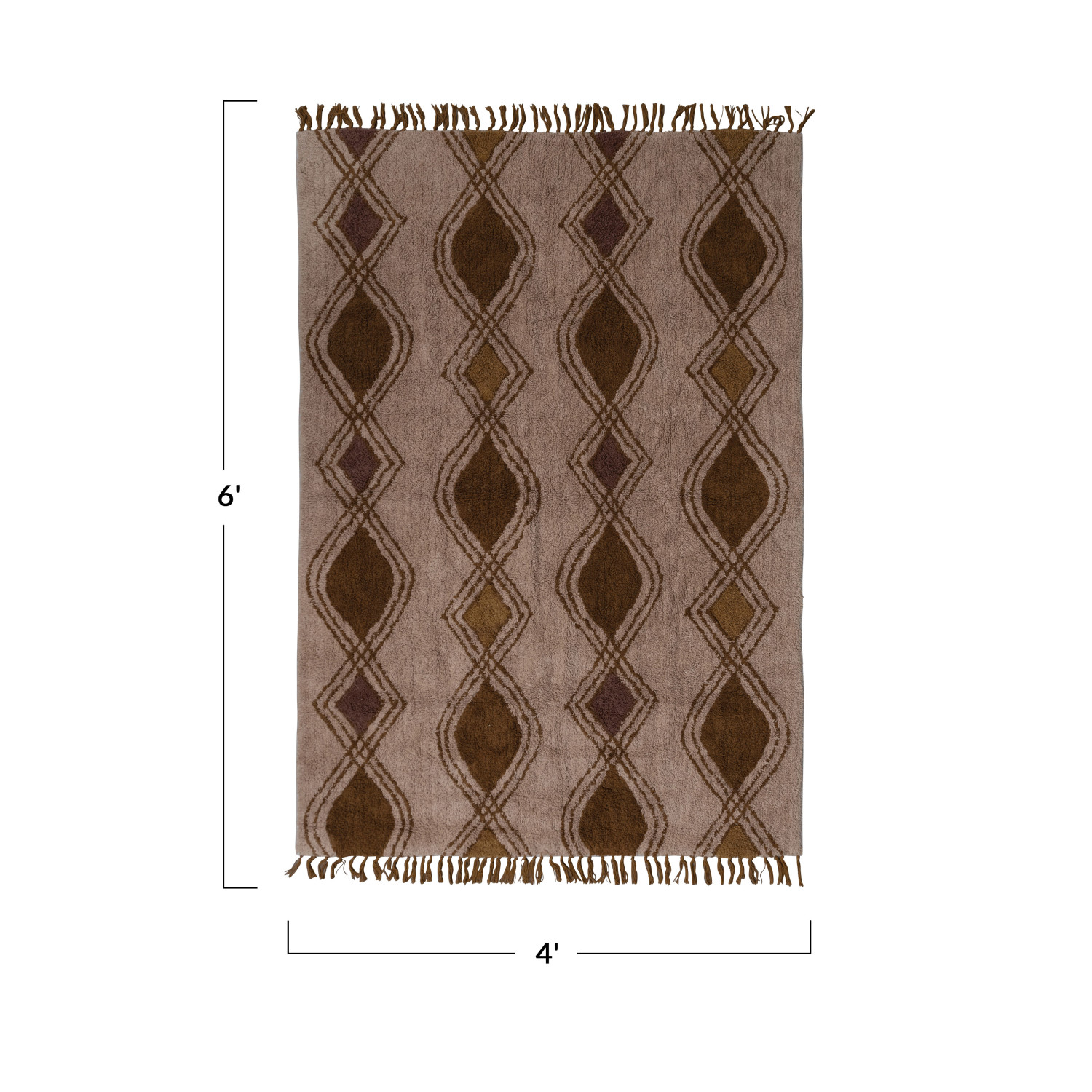 Catalog Name: 4' x 6' Cotton Tufted Rug w/ Diamond Pattern & Fringe, Multi Color