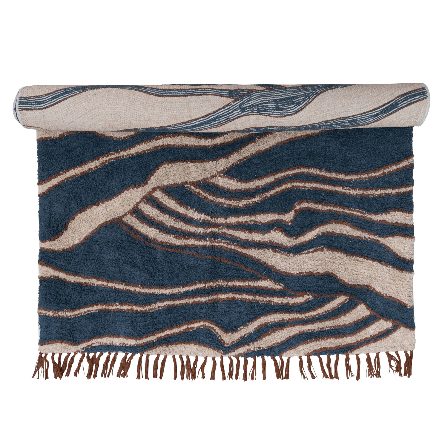 Catalog Name: 4' x 6' Cotton Tufted Rug w/ Wave Design & Fringe, Beige & Navy Color