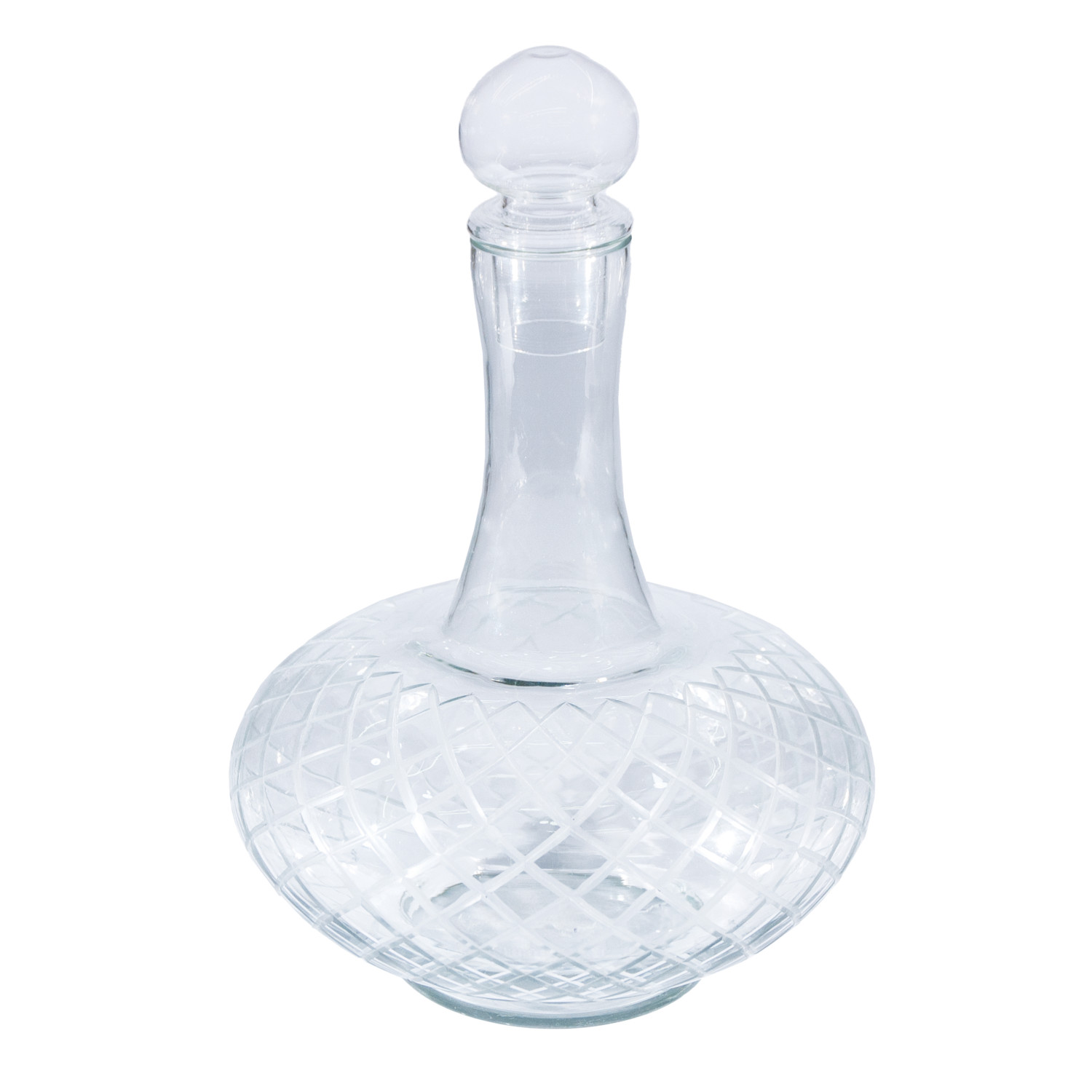 Catalog Name: 9" Round x 13"H 3-1/2 Quart Etched Glass Decanter w/ Diamond Pattern & Glass Stopper