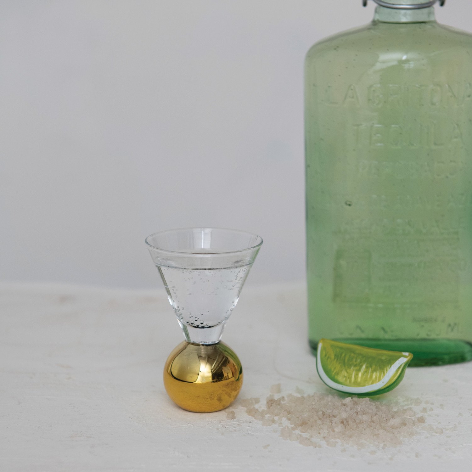 1 oz. Shot Glass w/ Gold Electroplated Ball Stem