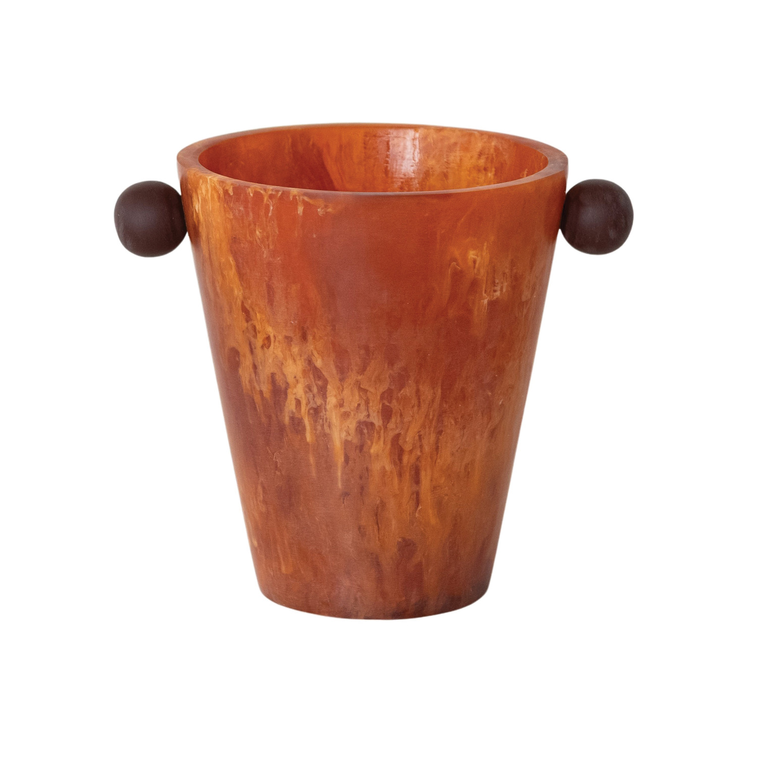 Catalog Name: 9-1/2"L x 6-1/2"W x 7-1/2"H Marbled Resin Bottle Cooler w/ Ball Handles, Sienna Color & Brown (Each One Will Vary)
