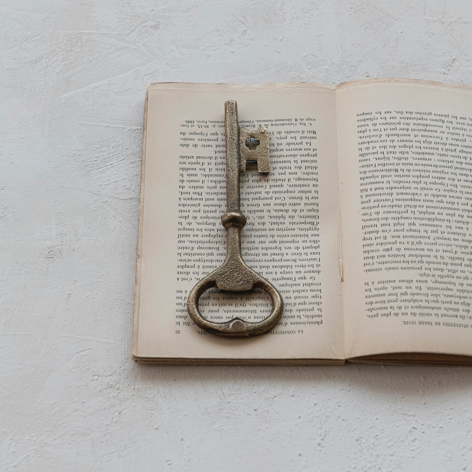 6-1/4"L Cast Iron Key Shaped Bottle Opener, Antique Brass Finish