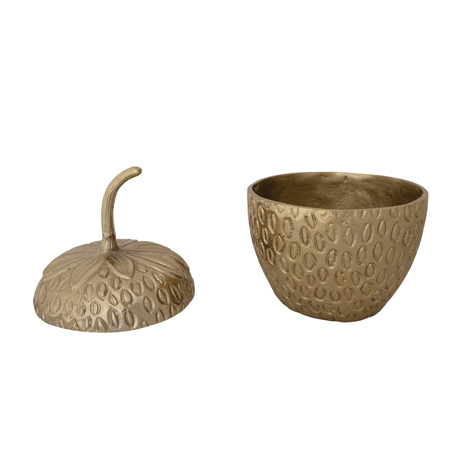 Catalog Name: 8"L x 7"W x 11-3/4"H 2-1/2 Quart Cast Aluminum Strawberry Shaped Ice Bucket, Gold Finish
