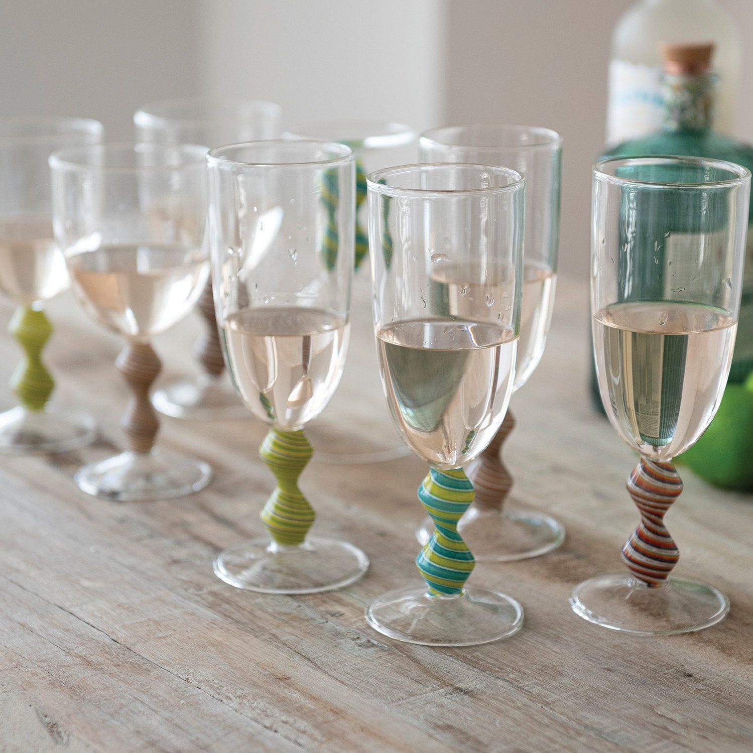 10 oz. Hand-Blown Wine Glass with Shaped & Striped Stem, 4 Colors