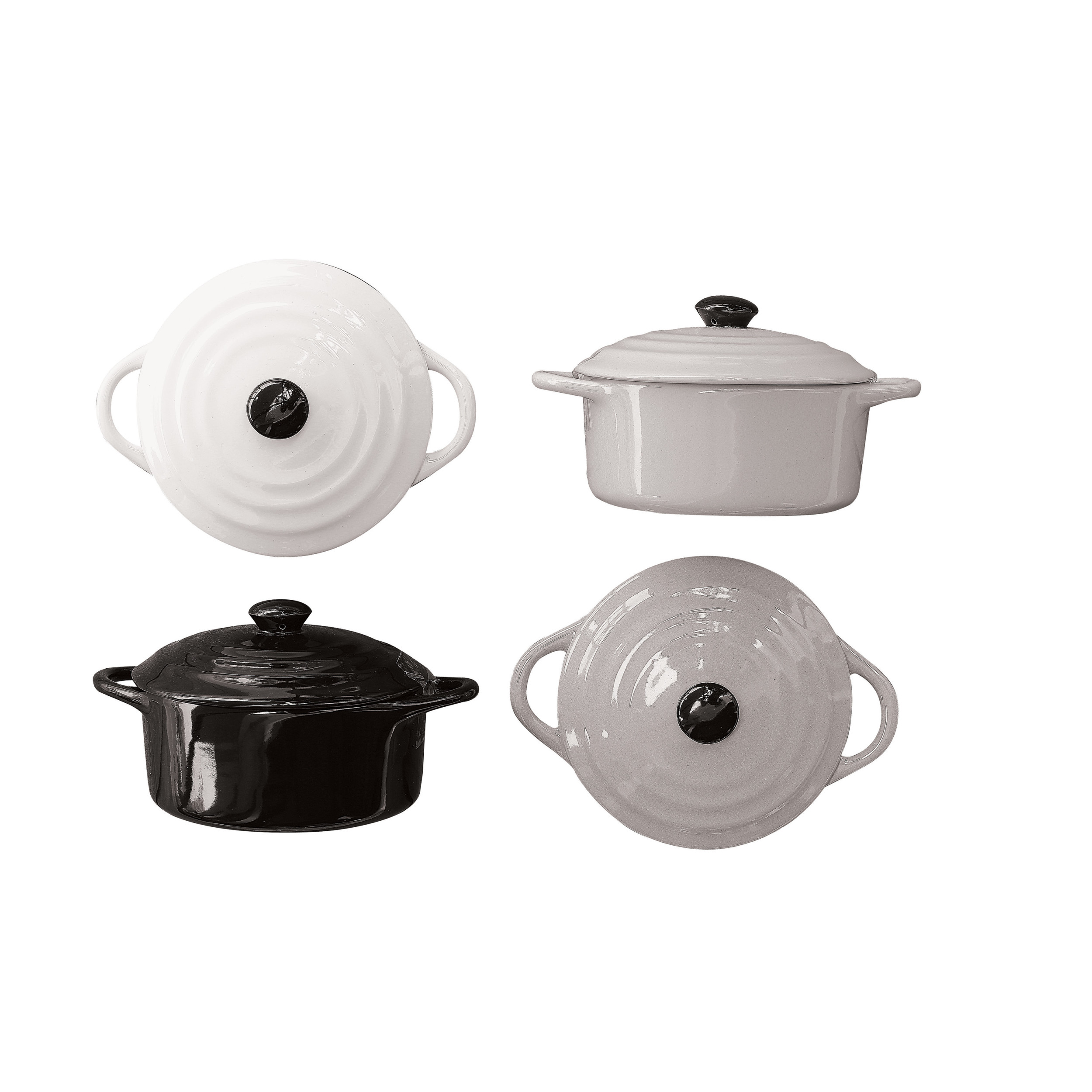 Catalog Name: 5" Round x 3"H 1 Cup Stoneware Mini Baker w/ Lid, 4 Colors