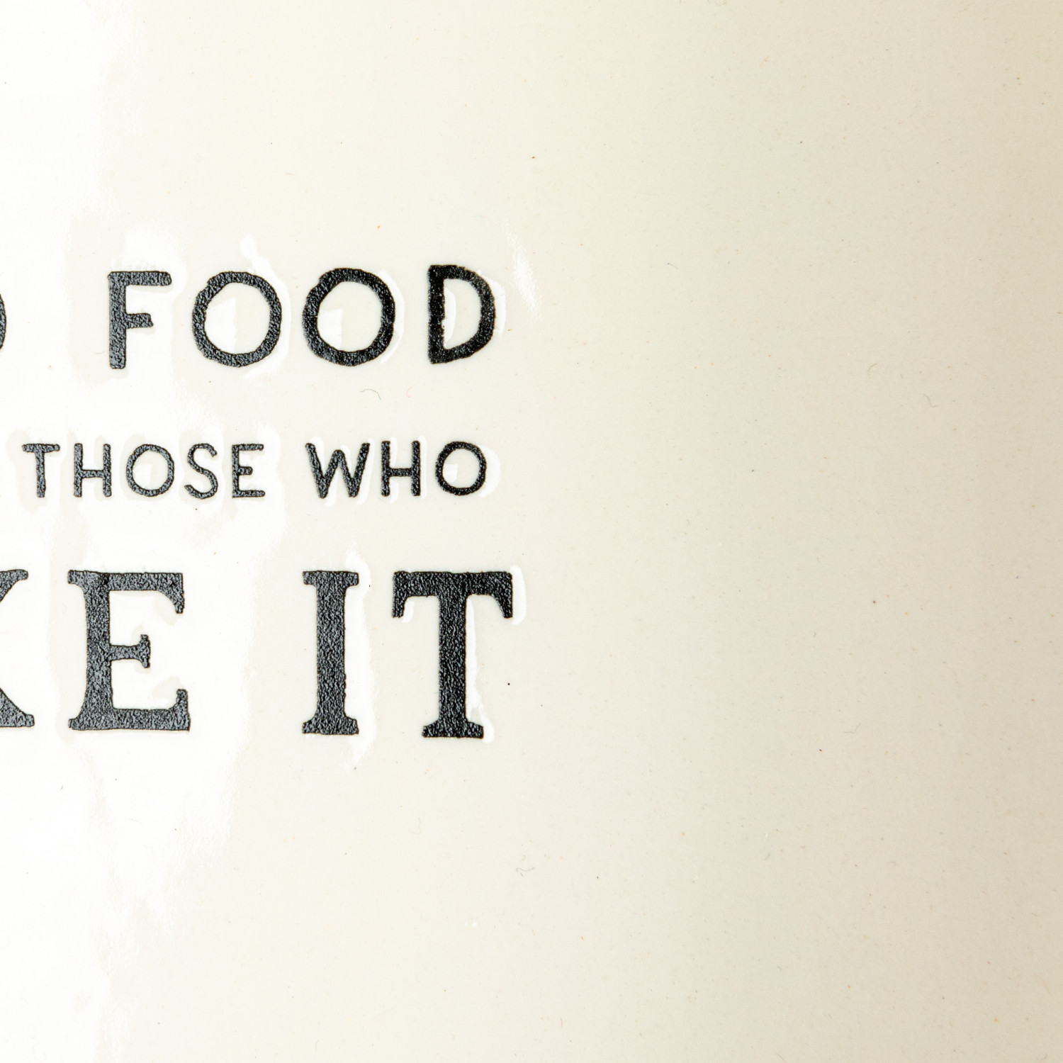 Catalog Name: 10-1/4"L x 7"W x 2-1/4"H 1 Quart Stoneware Baker w/ Wax Relief Saying "Good Food…", White & Black ©