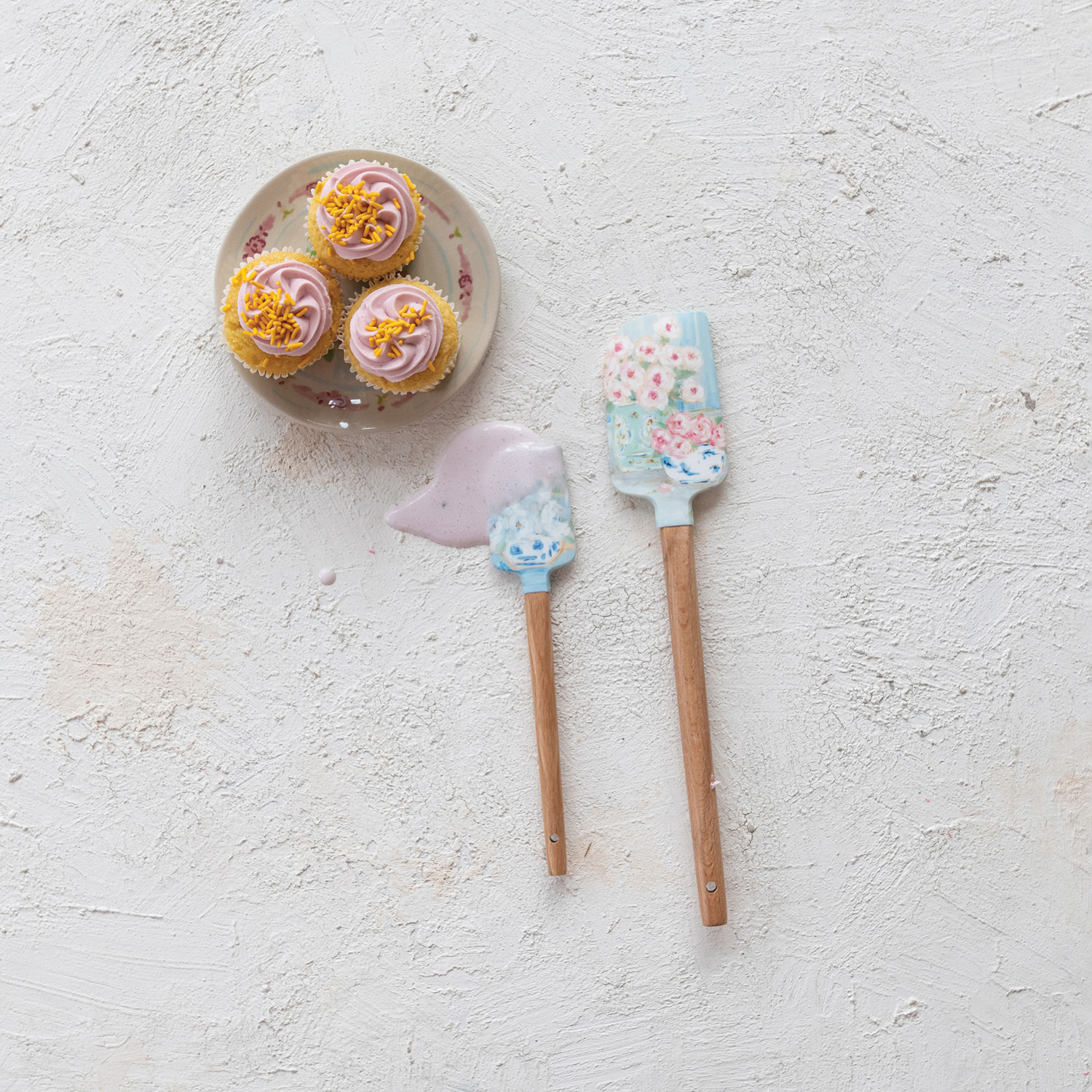 Silicone & Wood Spatulas with Floral Pattern, Set of 2 ©