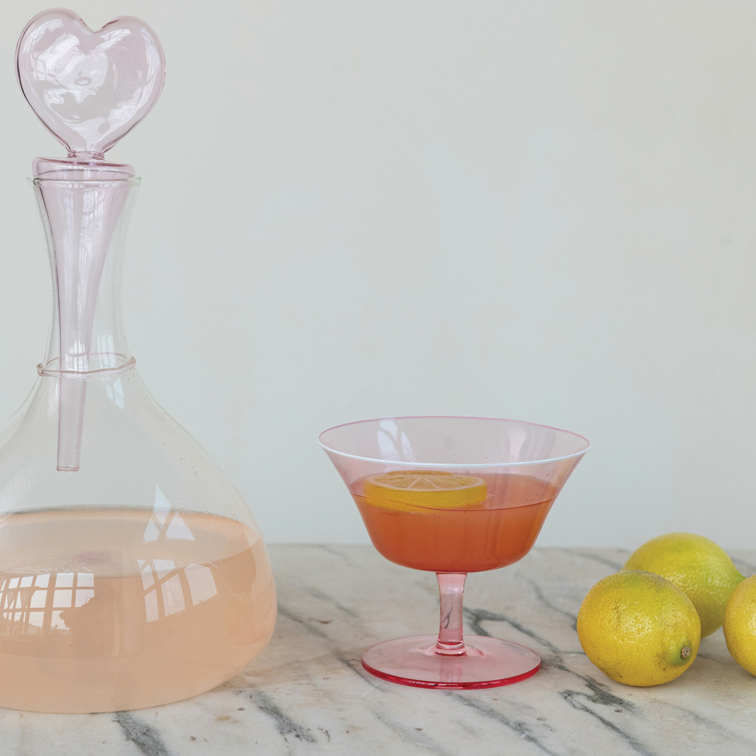 8 oz. Stemmed Coupe Glass with White Rim, Pink