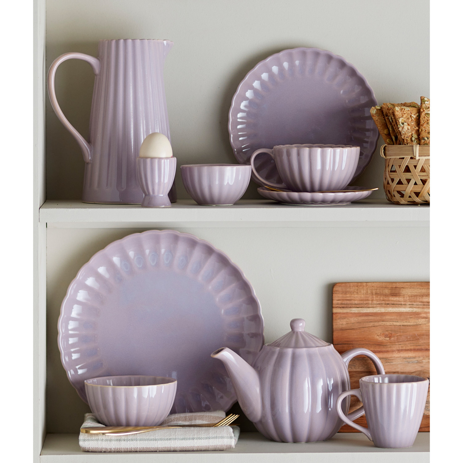 Stoneware Fluted Plate, Reactive Glaze, Lavender Color (Each One Will Vary)