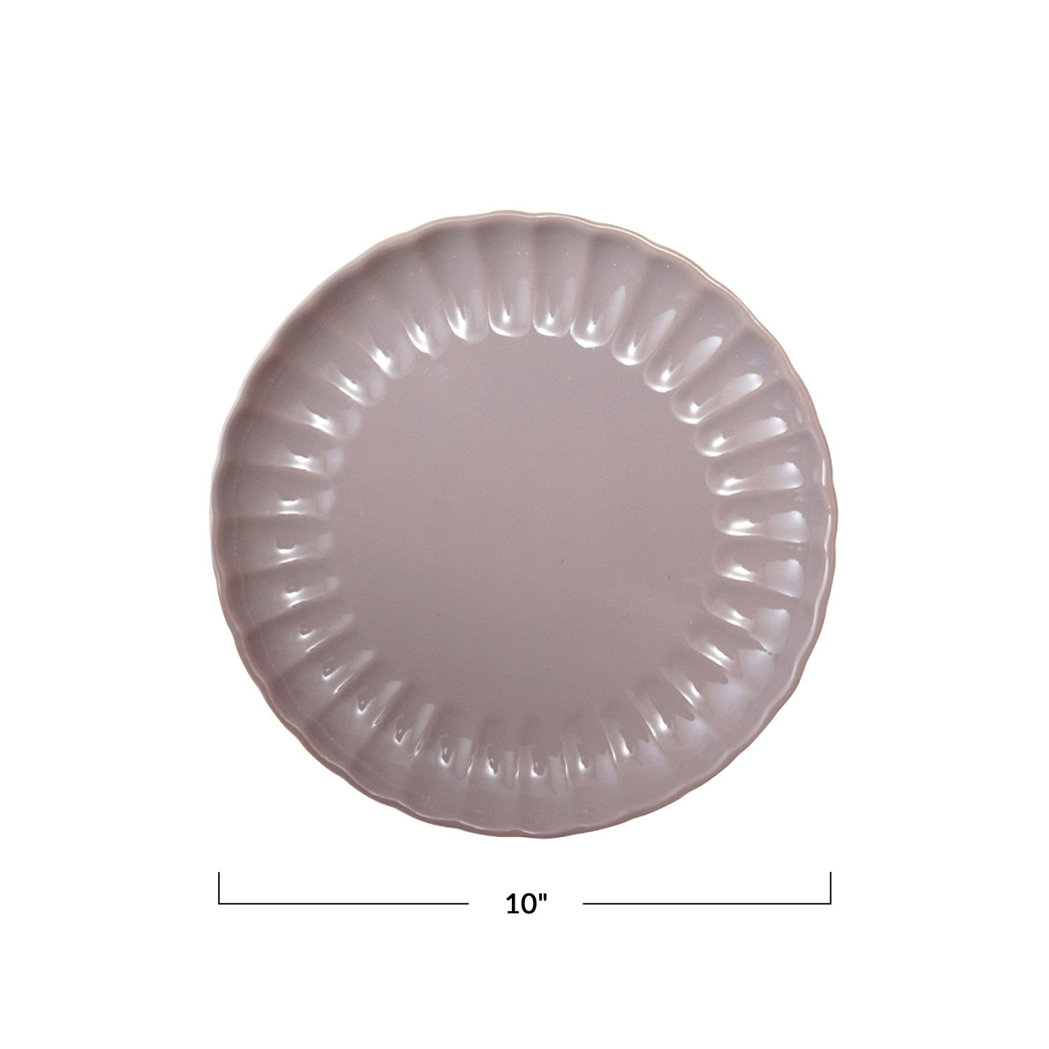 Catalog Name: 10" Round Stoneware Fluted Plate, Reactive Glaze, Lavender Color (Each One Will Vary)