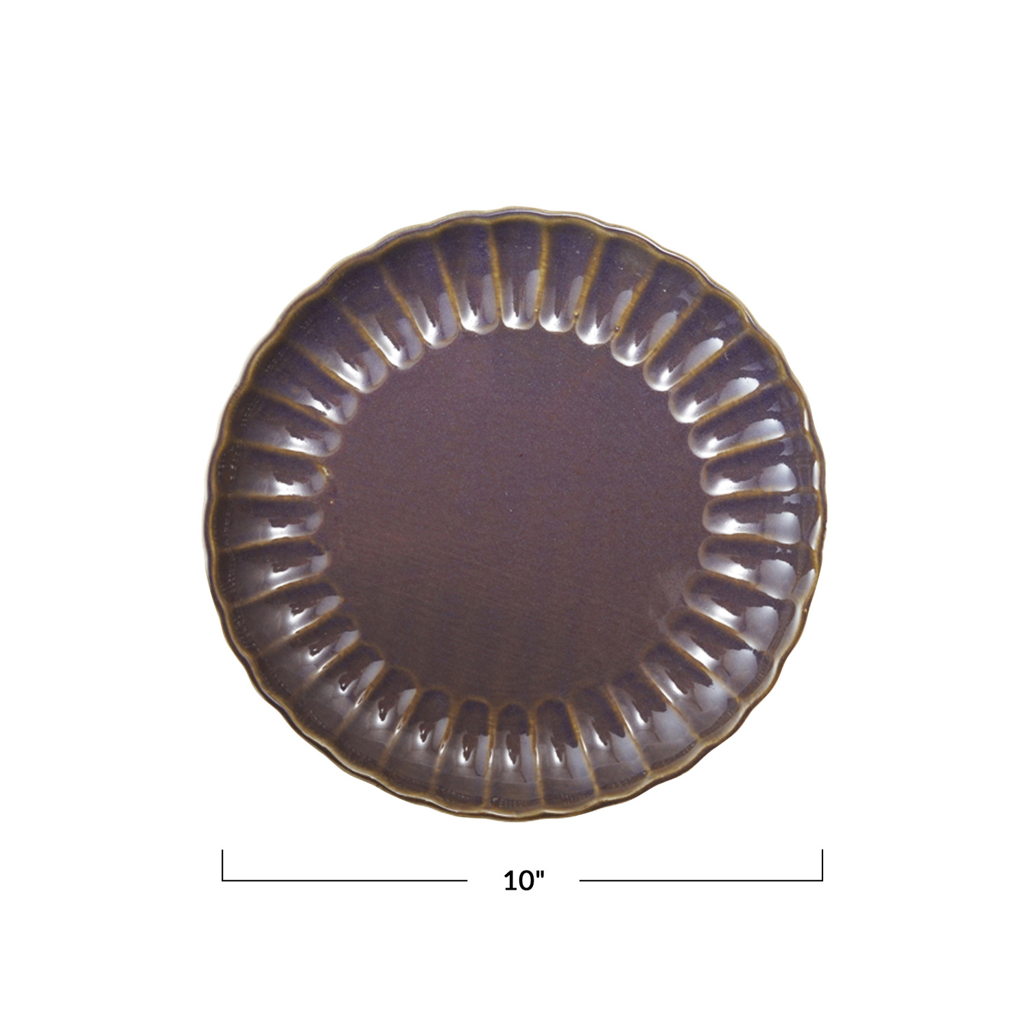Catalog Name: 10" Round Stoneware Fluted Plate, Reactive Glaze, Plum Color (Each One Will Vary)