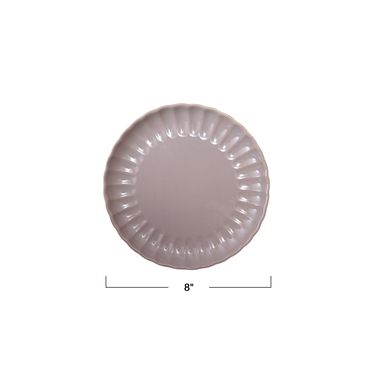 Catalog Name: 8" Round Stoneware Fluted Plate, Reactive Glaze, Lavender Color (Each One Will Vary)