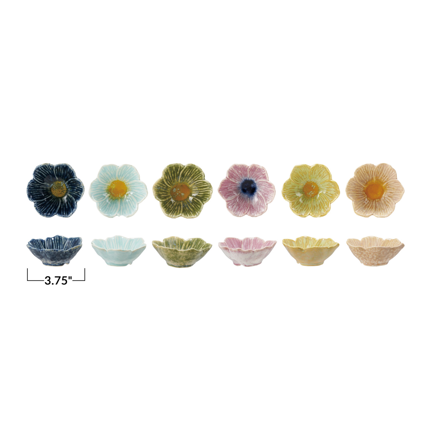 Catalog Name: 3-3/4" Round Stoneware Flower Shaped Bowl, Reactive Glaze, 6 Colors (Each One Will Vary)