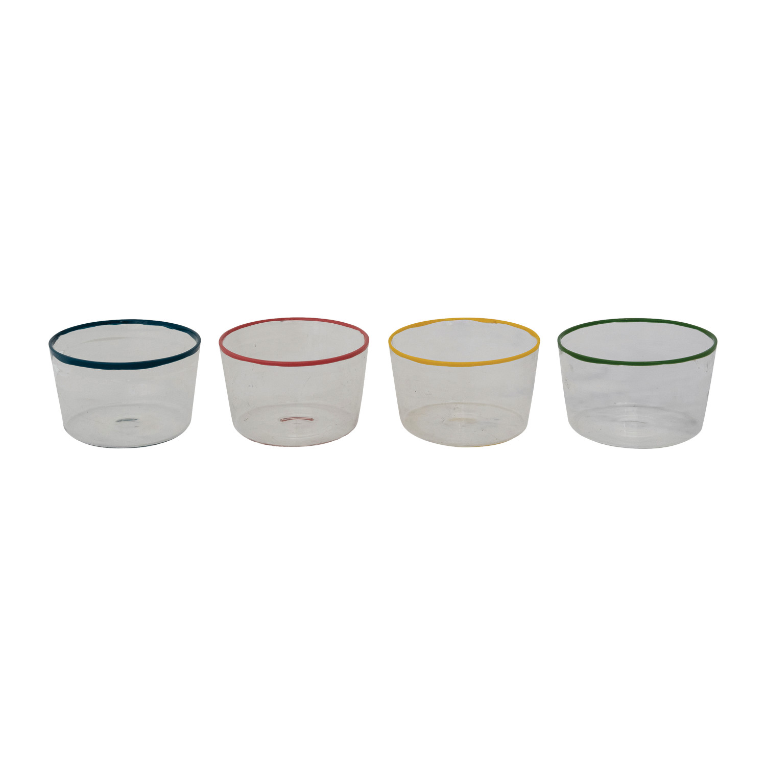 Glass Bowl with Colored Edge, 4 Colors (Each One Will Vary)