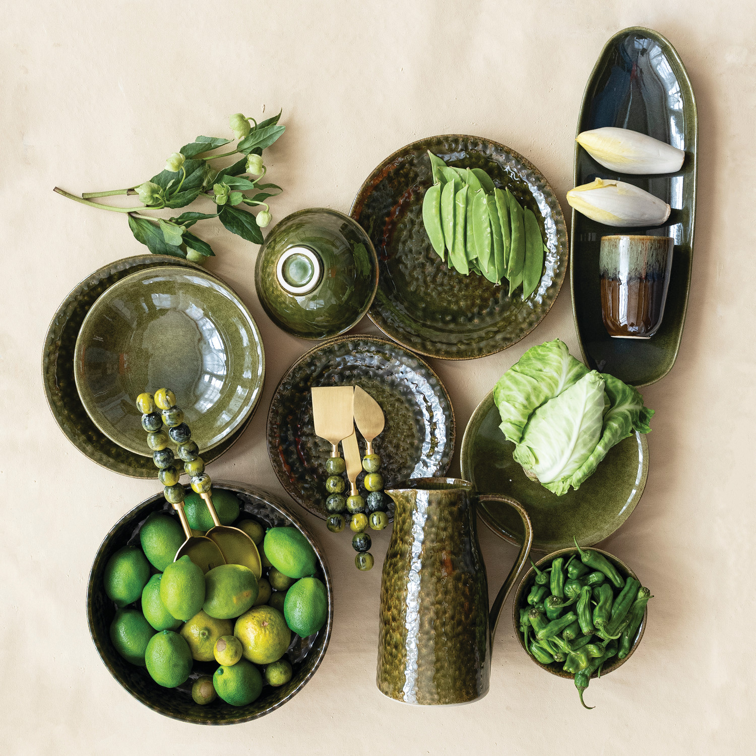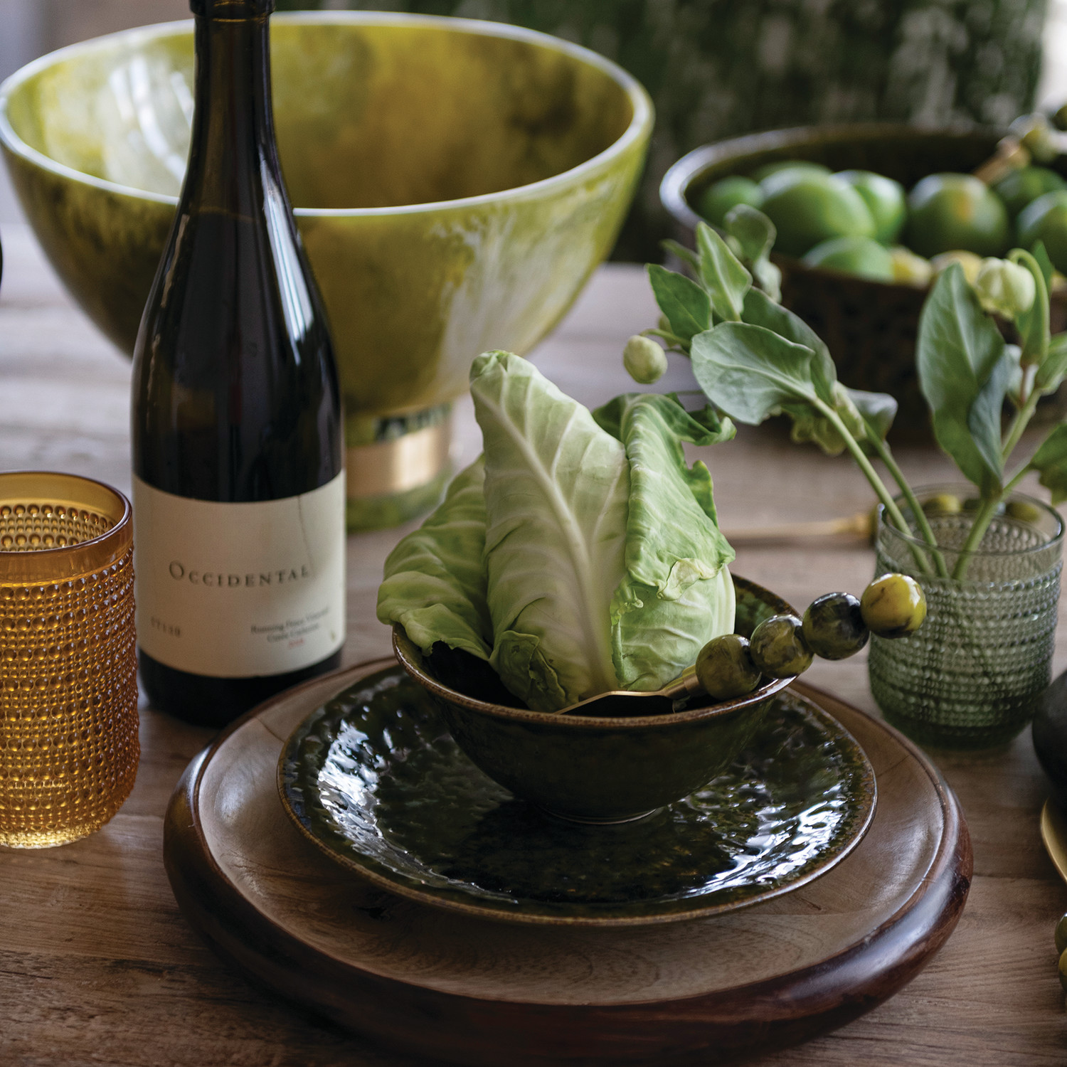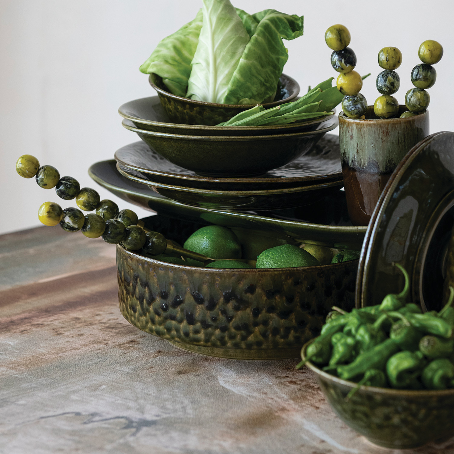 Stoneware Plate, Green (Each One Will Vary)