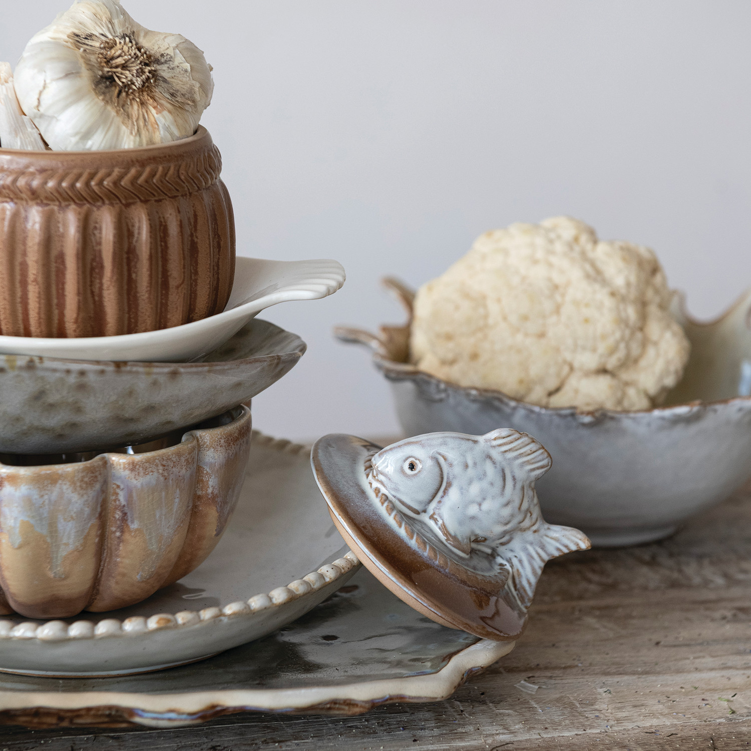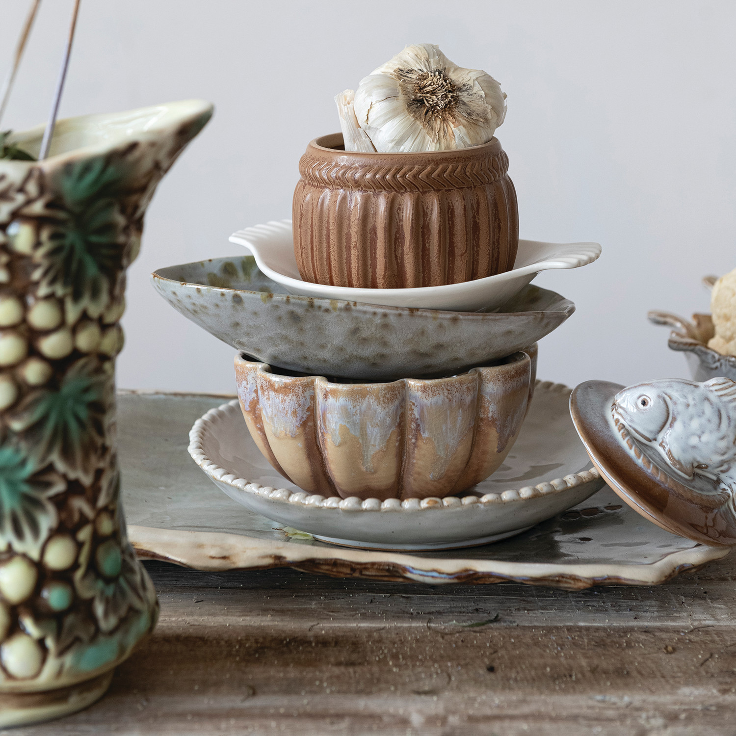 Catalog Name: 5-3/4" Round x 2-3/4"H Stoneware Fluted Scalloped Bowl, Reactive Crackle Glaze, Brown (Each One Will Vary)