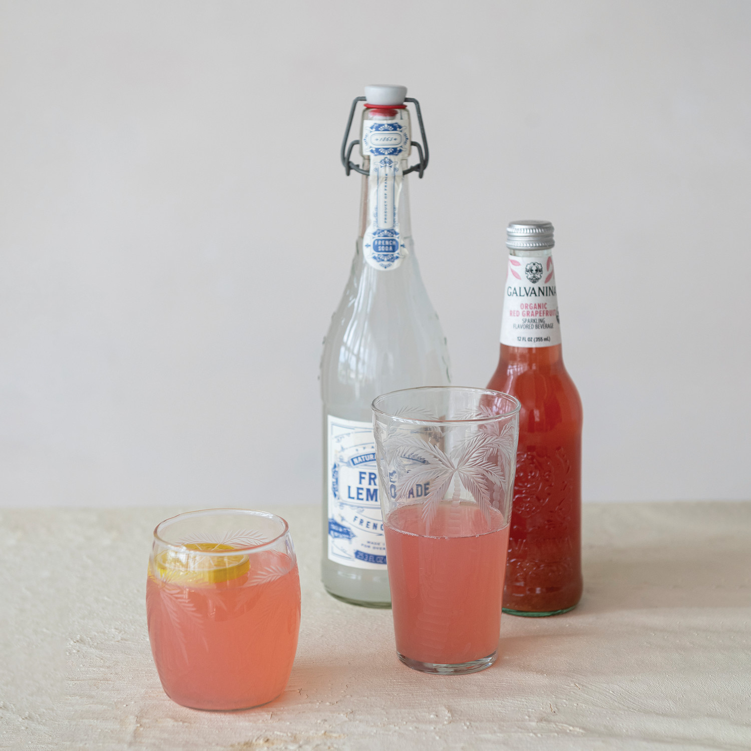 Catalog Name: 3-1/4" Round x 3-1/4"H 8 oz. Etched Drinking Glass w/ Palm Trees