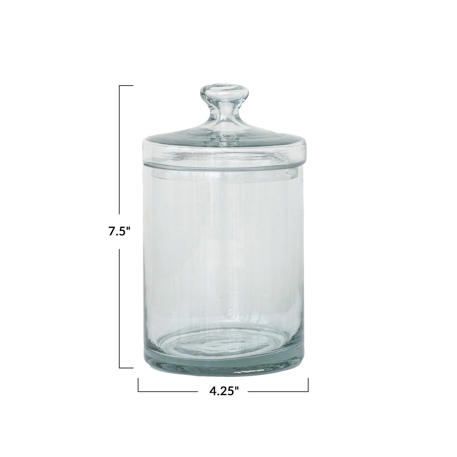 This Round Cup Glass Jar with Lid is a blend of functionality and decorative appeal. The clear glass allows for easy identification of the contents, while the embossed design adds a touch of sophistication. Whether used to store kitchen essentials or as an elegant way to display collectibles, this jar fits seamlessly into a variety of decor styles. It measures 4.25 inches in diameter and 7.5 inches in height, offering ample space for storage needs. Its round shape and size are perfect for both practical storage and aesthetic display, making it a versatile addition to any farmhouse, French country, or vintage setting. The jar's classic design ensures it will remain a cherished piece for years to come.