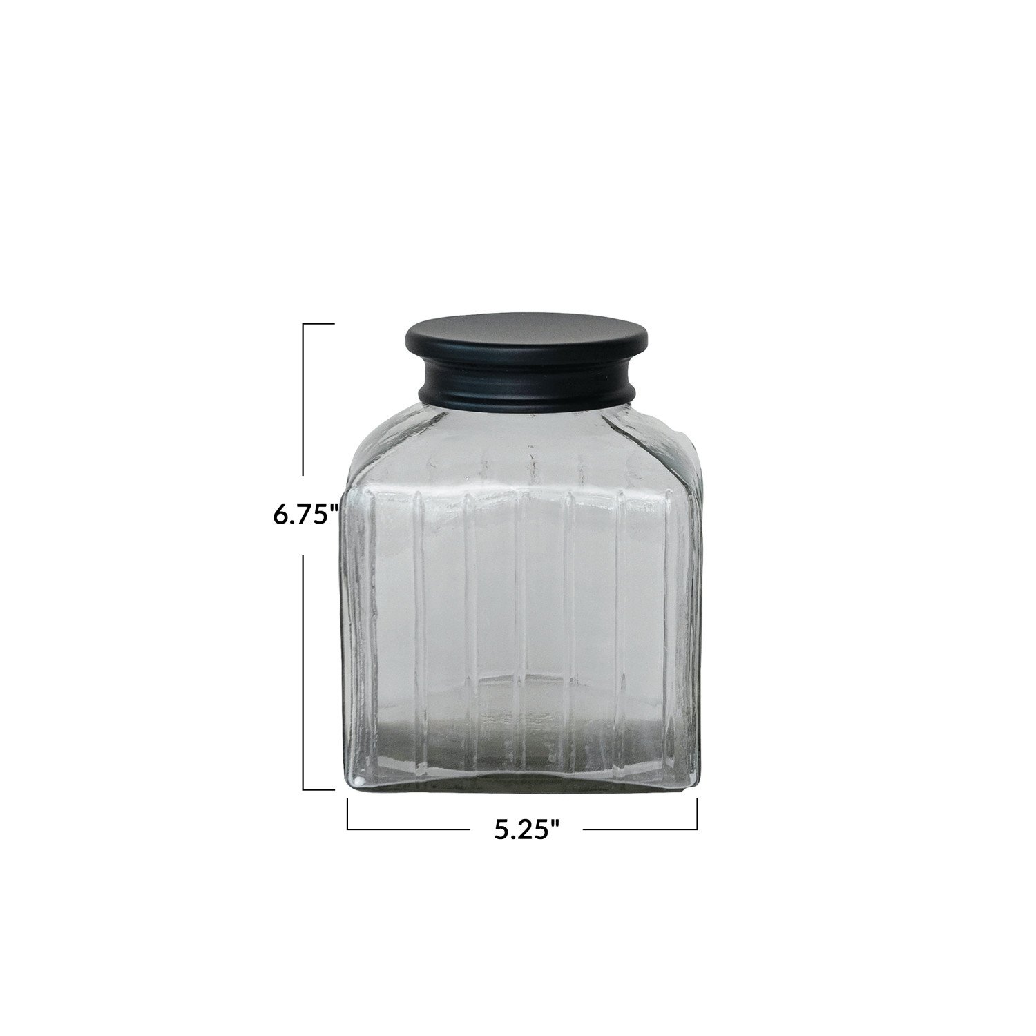 6 Cup Pressed Glass Jar w/ Black Stainless Steel Lid